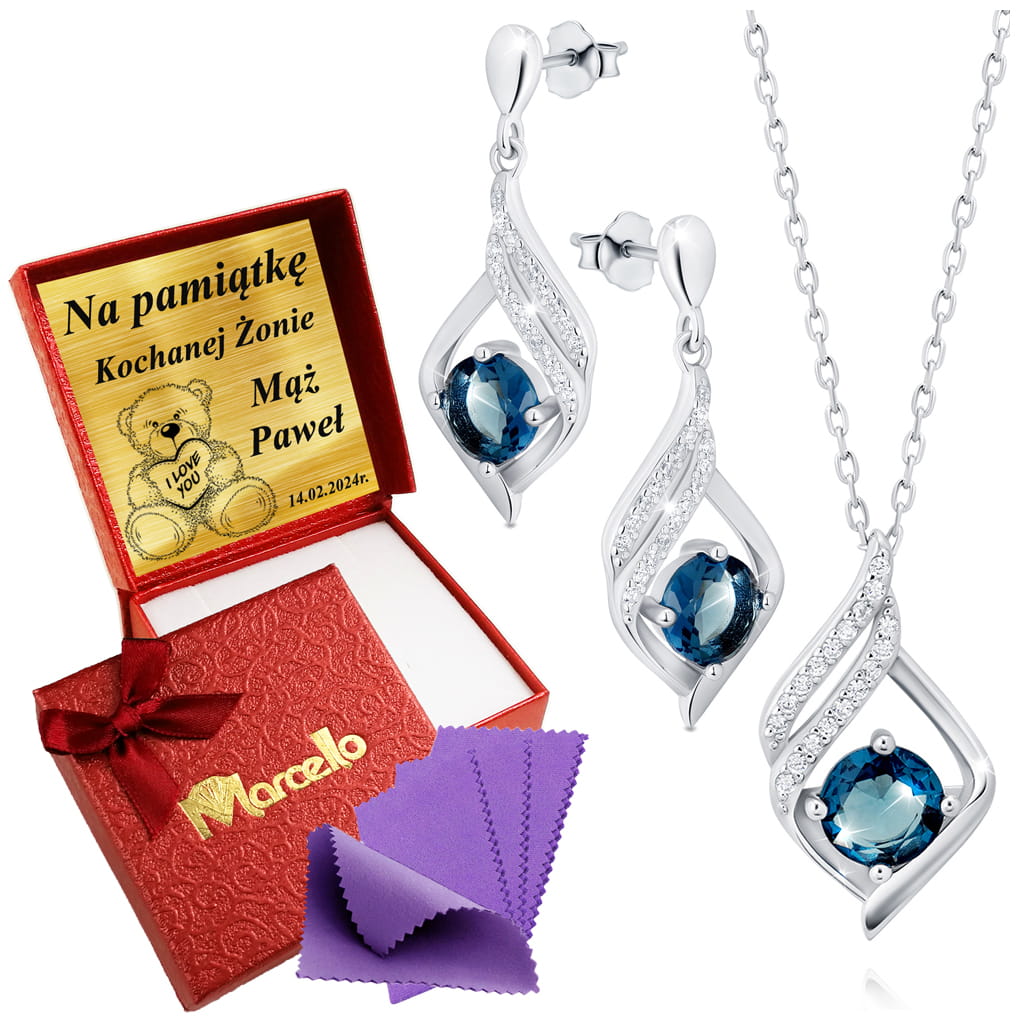 Komplet Biżuterii Srebrnej Naszyjnik Kolczyki 925 Grawer