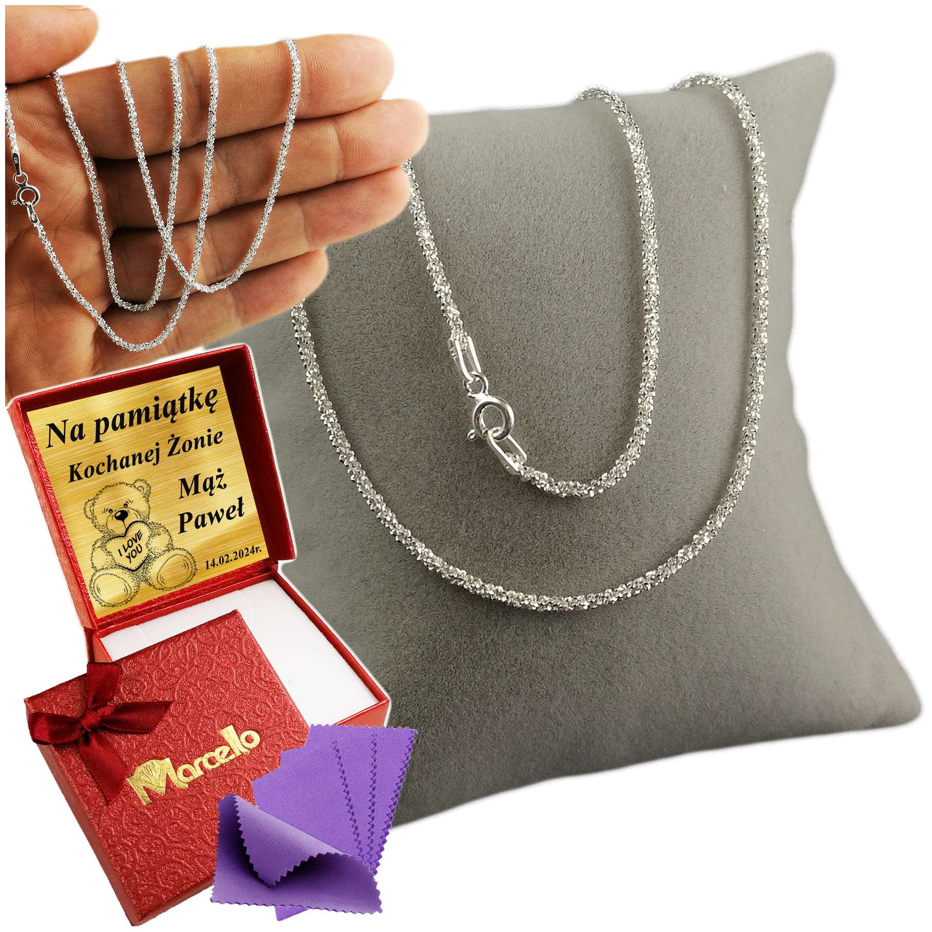 Błyszczący Łańcuszek Damski ŚNIEG Pstrokaty Srebro 925 Grawer Dla Kobiety