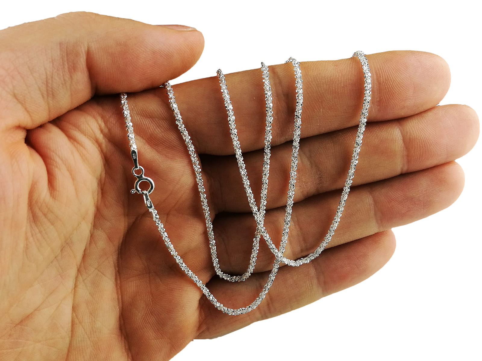 Śliczny łańcuszek niesamowicie odbijający każdy promyk światła, w całości wykonany z najwyższej jakości srebra próby 925
