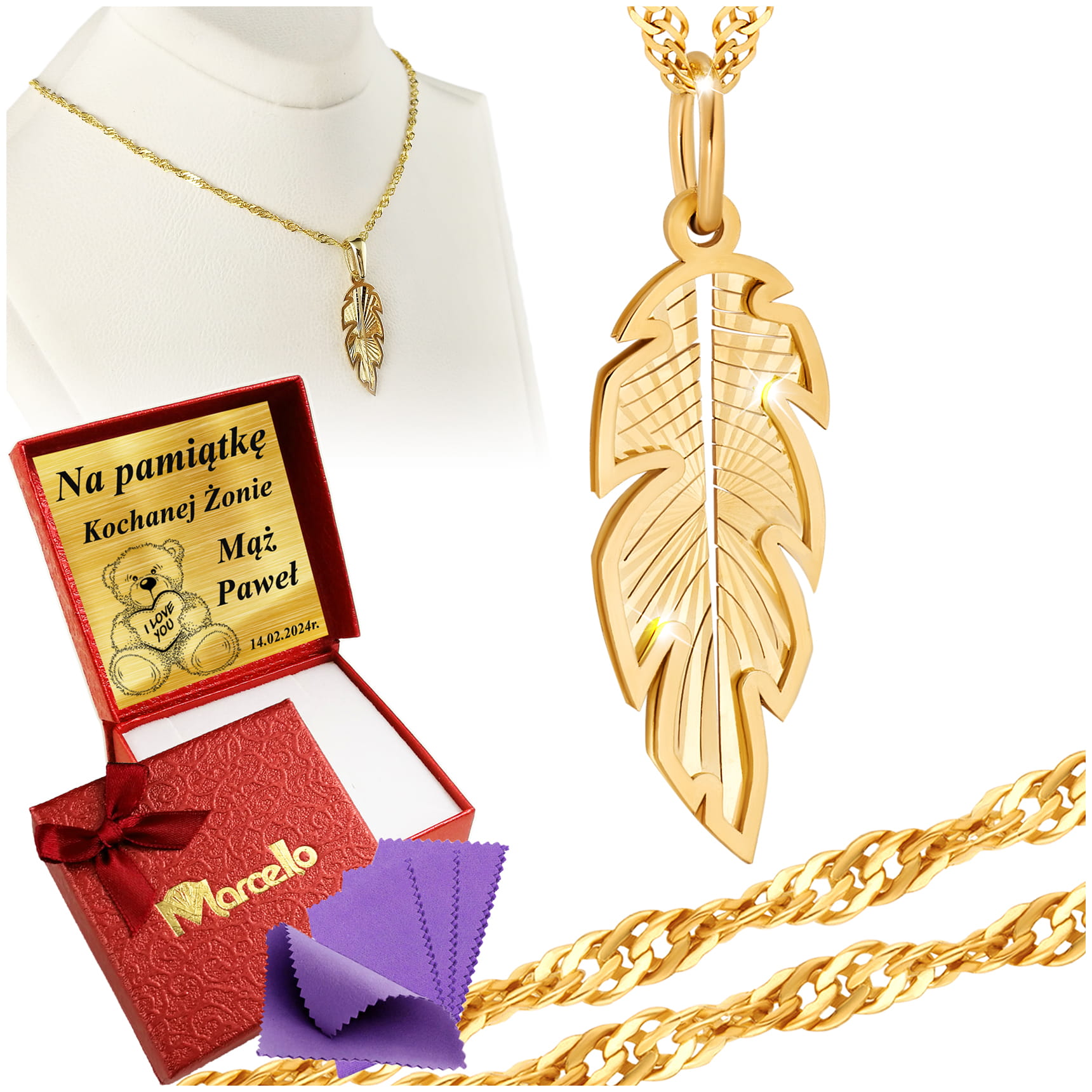 Złoty Naszyjnik Pióro – Symbol Lekkości i Wolności w Ekskluzywnym Opakowaniu w całości wykonany z najwyższej jakości złota próby 333