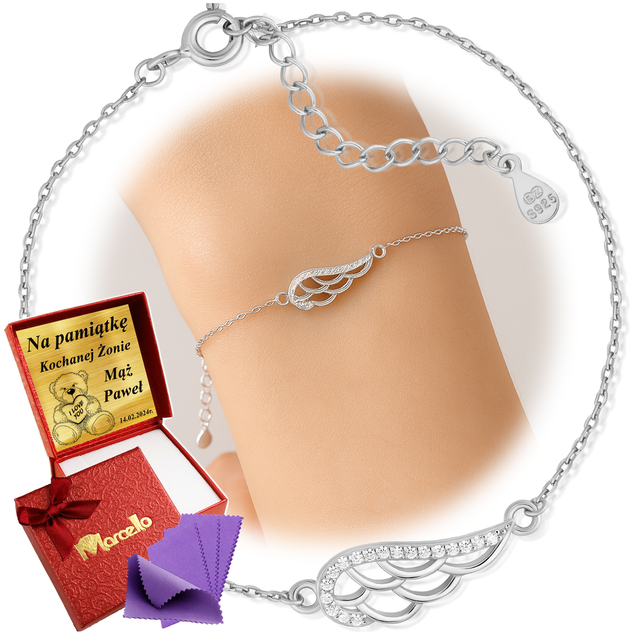 Srebrna Bransoletka Gwiazd Skrzydło Anioła Srebro 925 Grawer UPOMINEK GRATIS