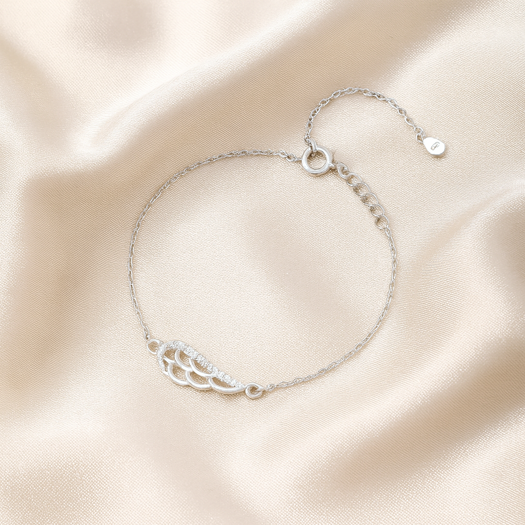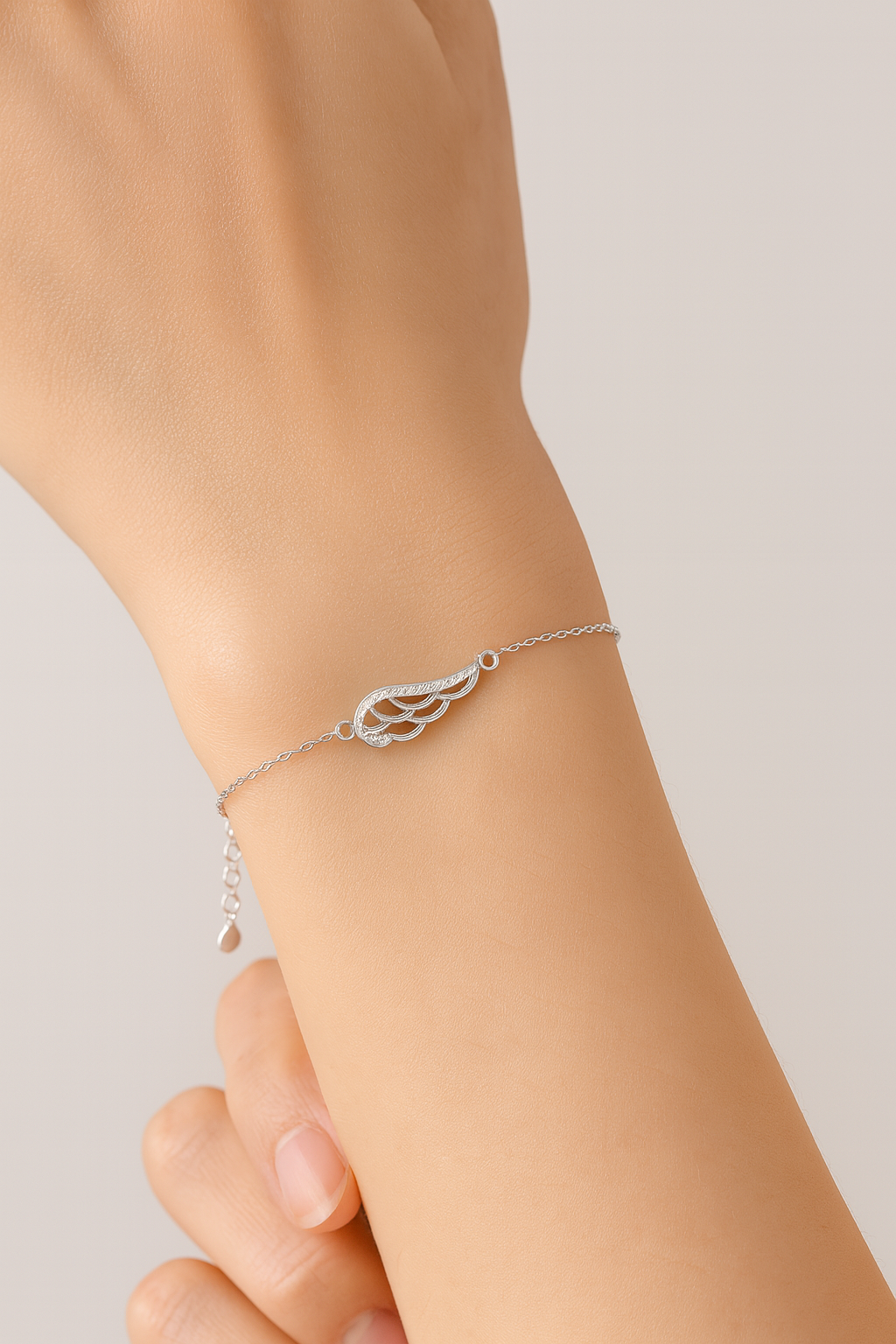 Piękna damska bransoletka w kształcie Skrzydełka z cyrkoniami .W całości wykonany ze złota srebra 925
