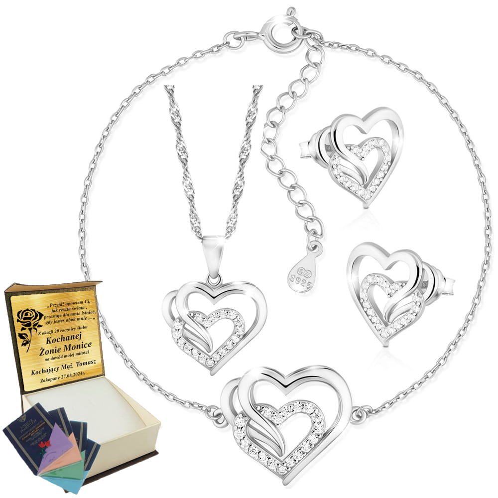 Srebrny Komplet Łańcuszek Kolczyki Bransoletka 925