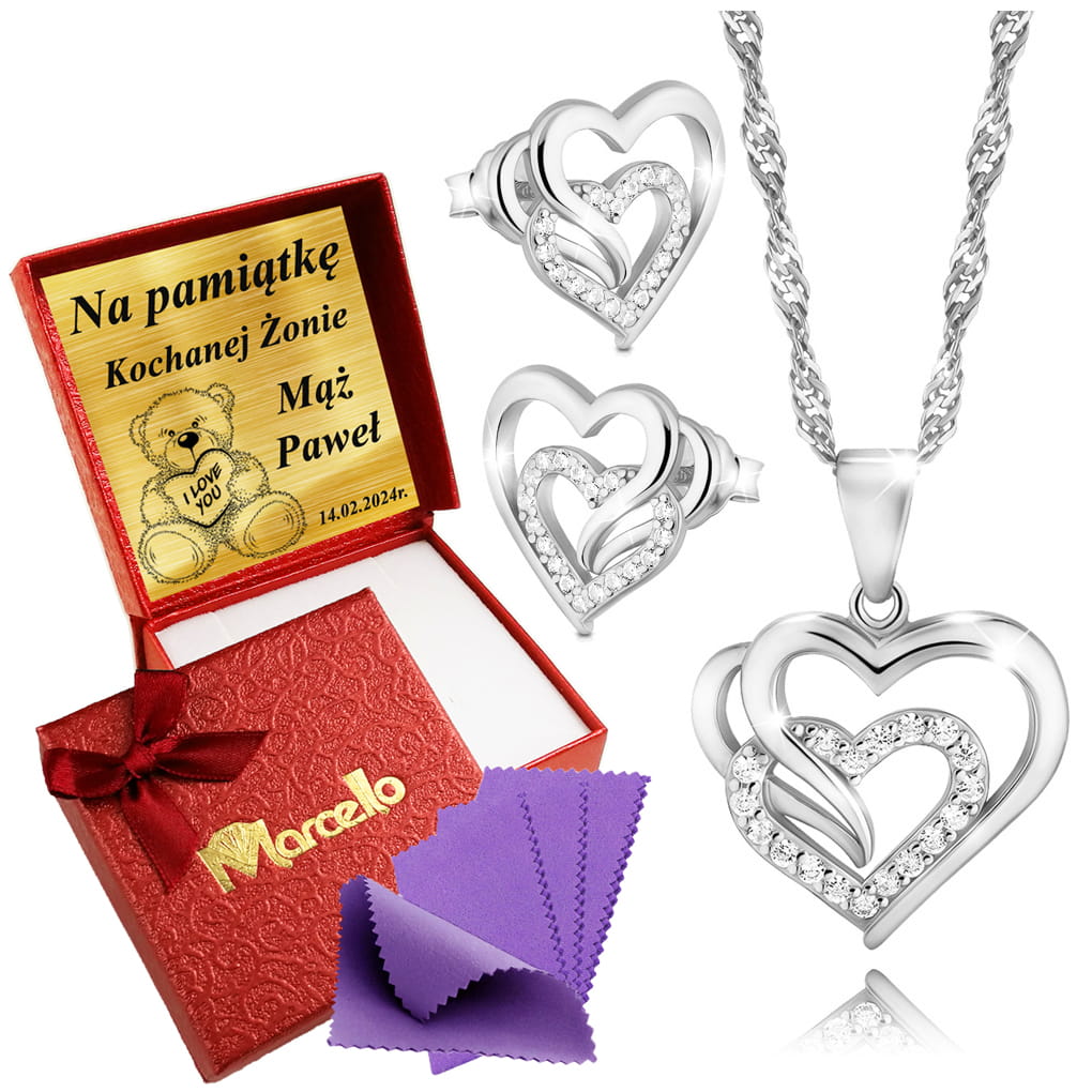 Srebrny Komplet Łańcuszek Kolczyki Serca Srebro