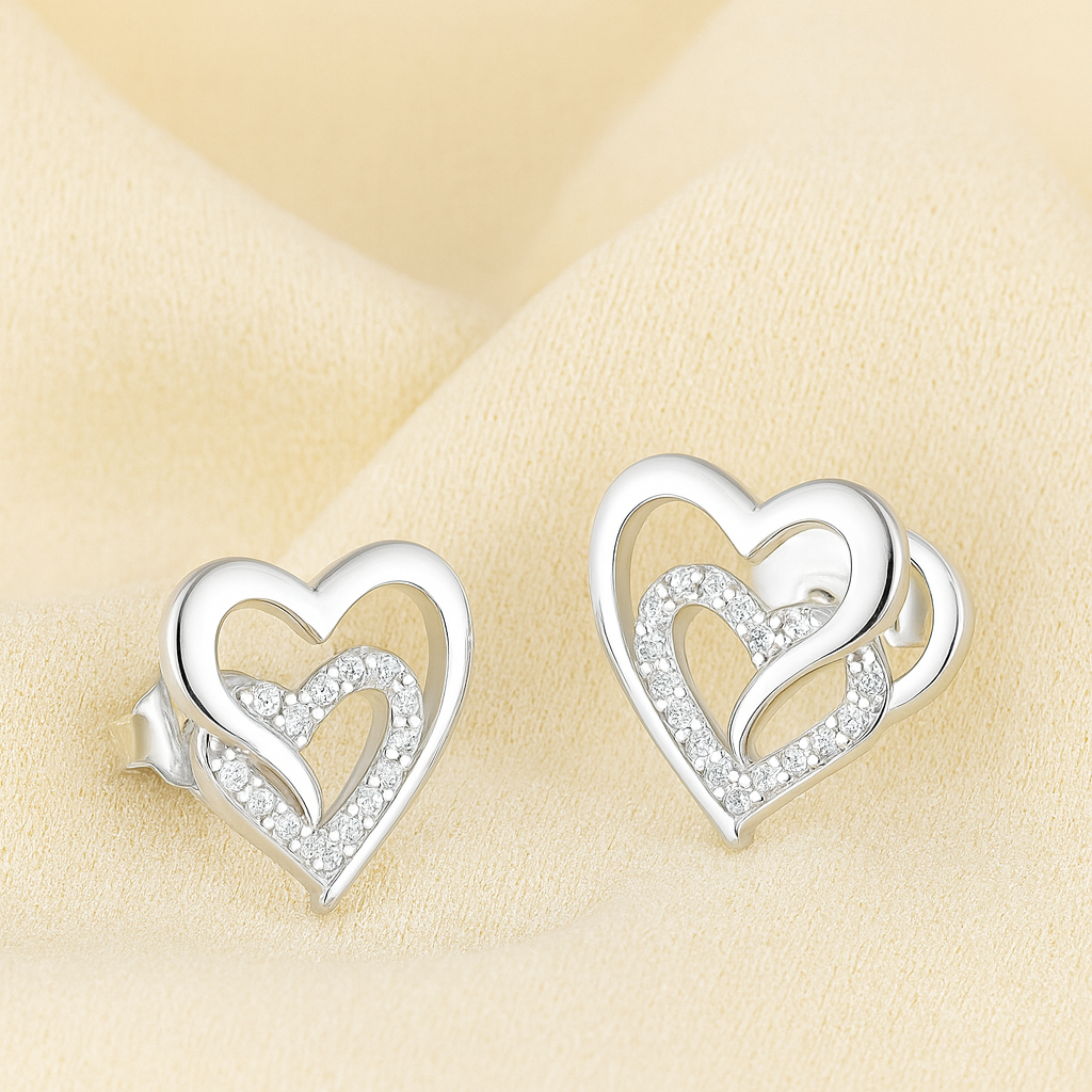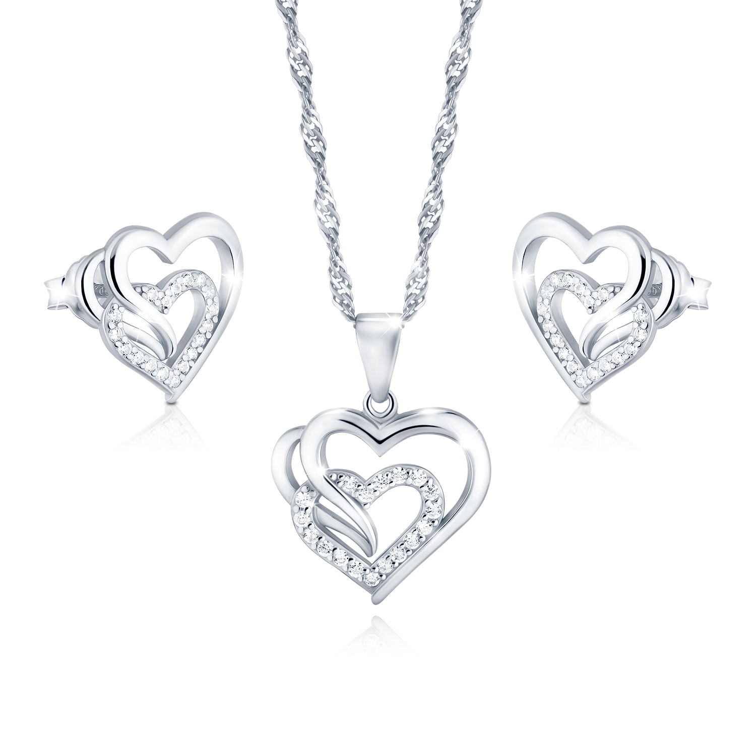 Srebrny Komplet Łańcuszek Kolczyki Serce 925