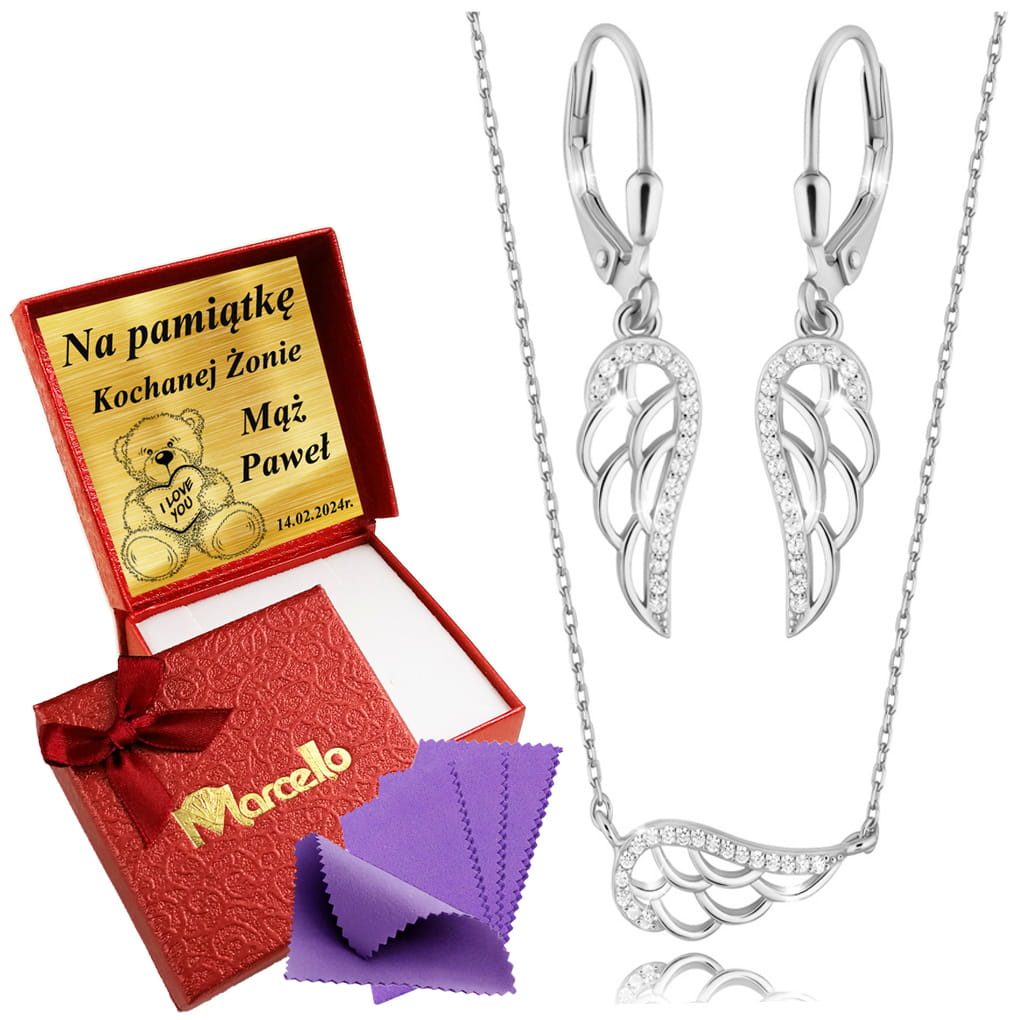 Srebrny Komplet Łańcuszek Kolczyki Skrzydła Srebro