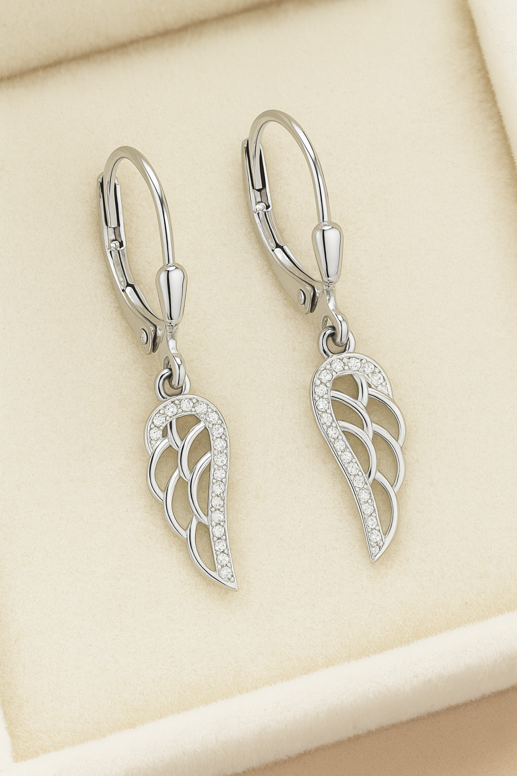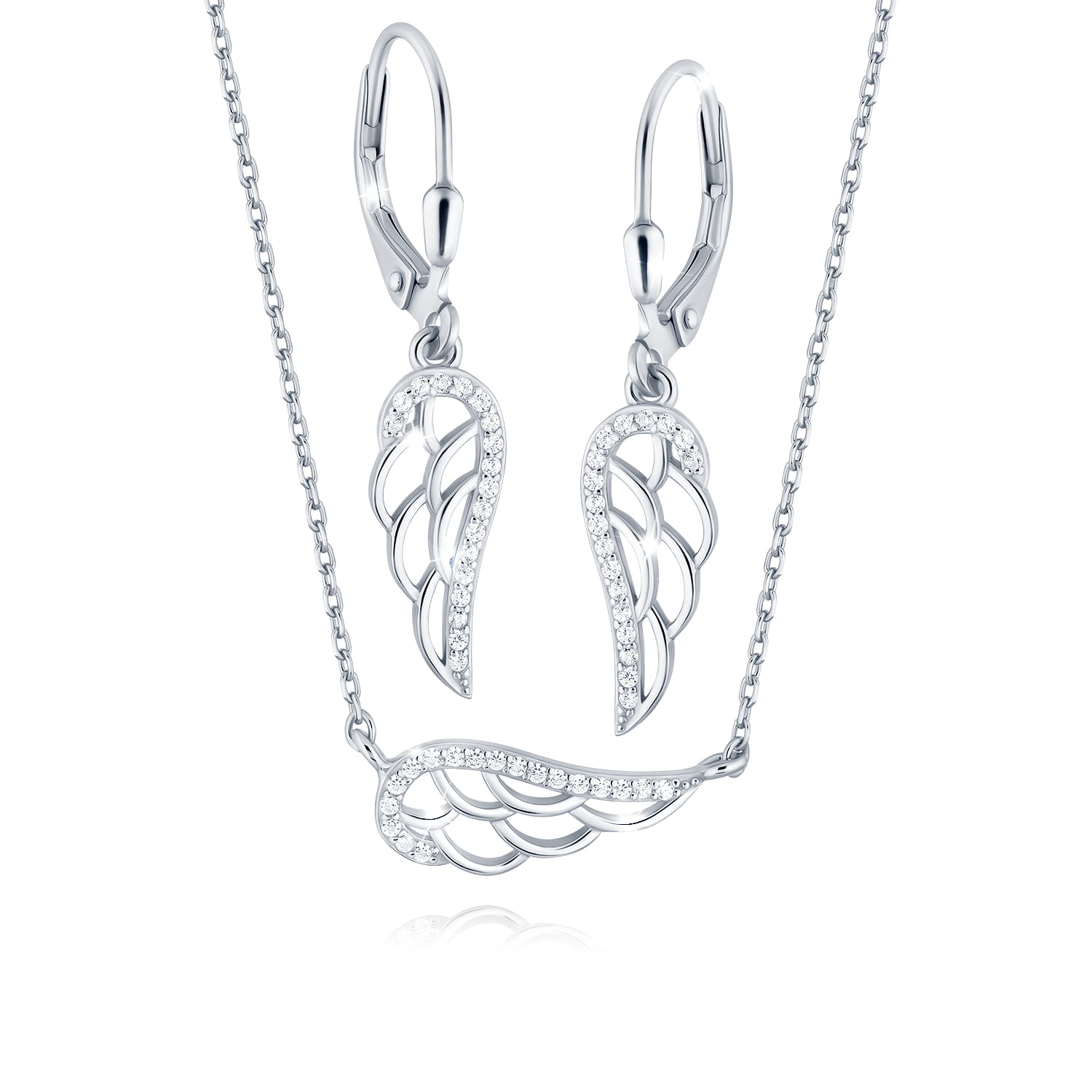 Srebrny Komplet Łańcuszek Kolczyki Skrzydła