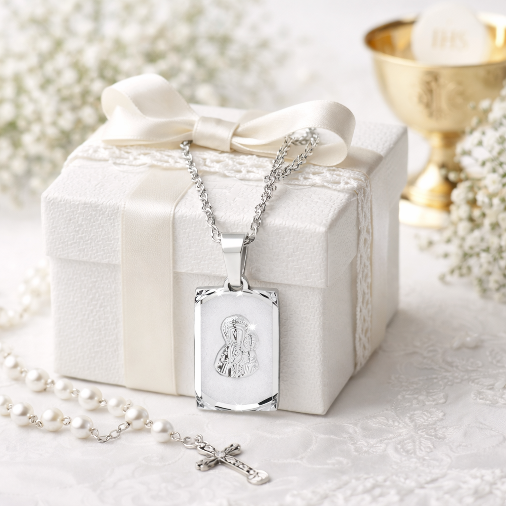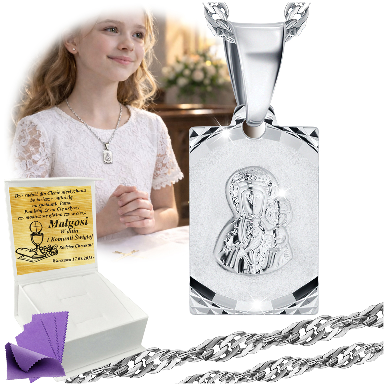 Srebrny Łańcuszek z Medalikiem 925 Komunia Chrzest