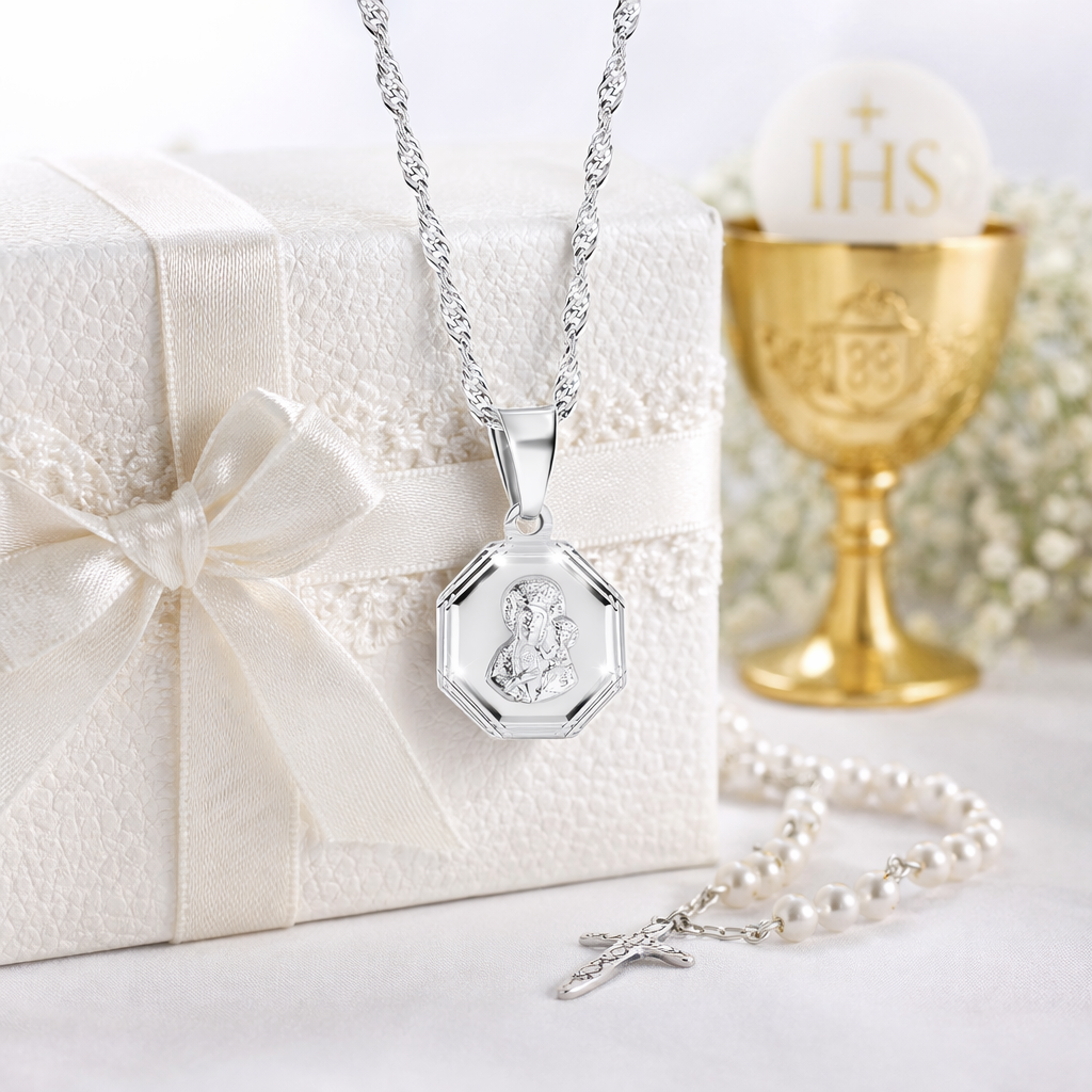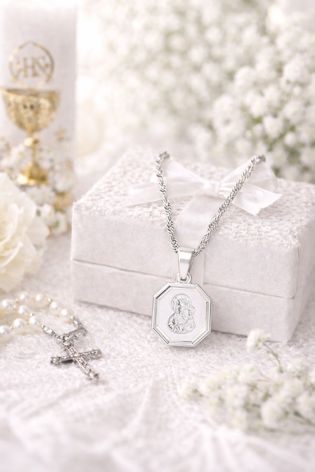 Srebrny Łańcuszek z Medalikiem 925 Komunia Chrzest