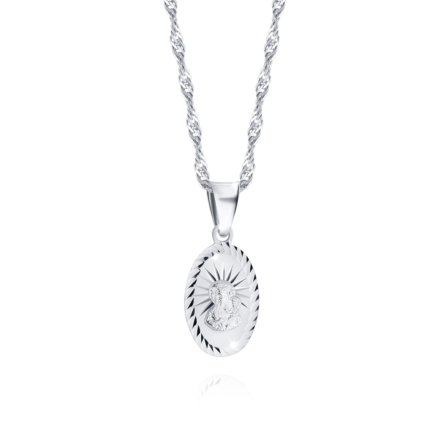 Śliczny łańcuszek z medalikiem w całości wykonany z najwyższej jakości srebra próby 925.