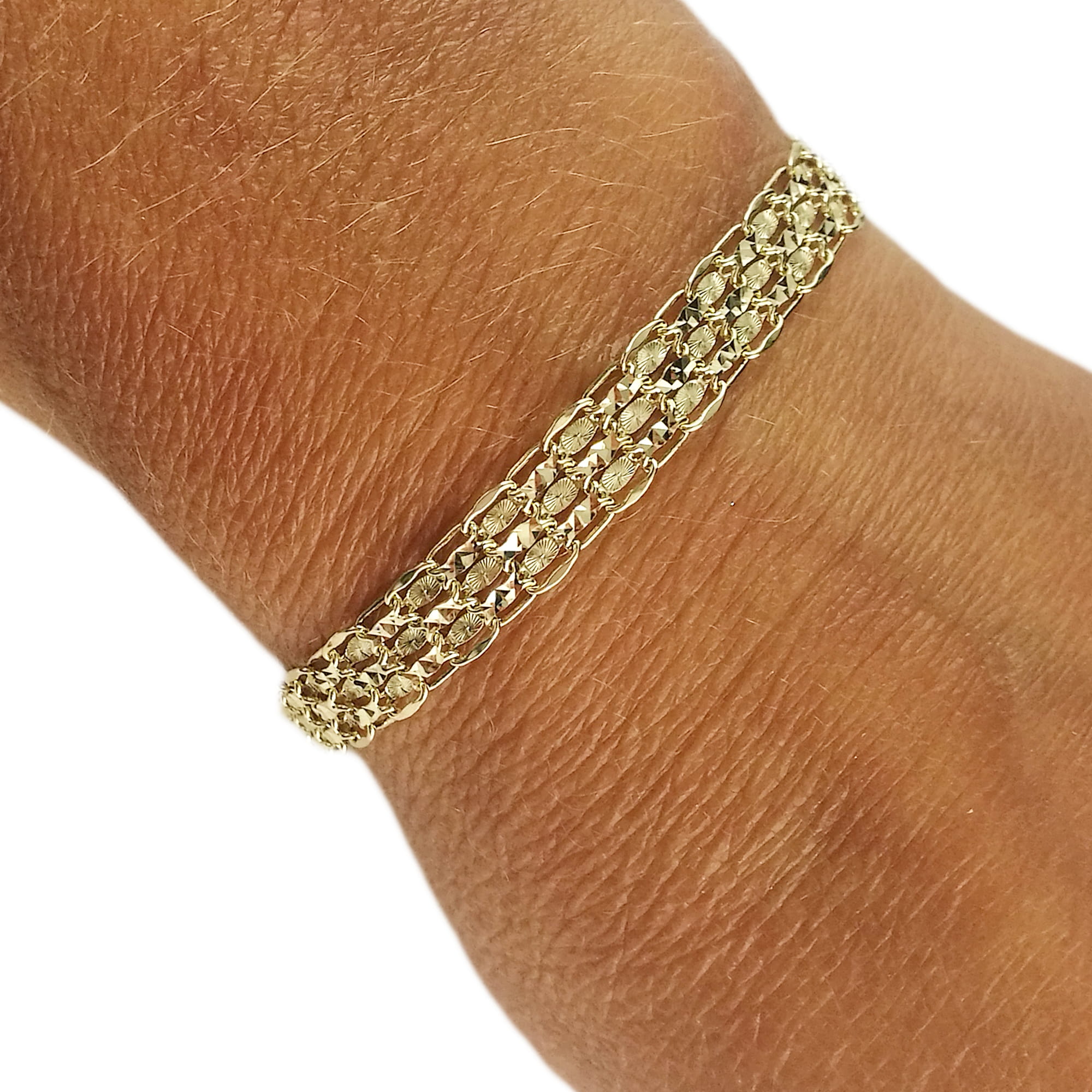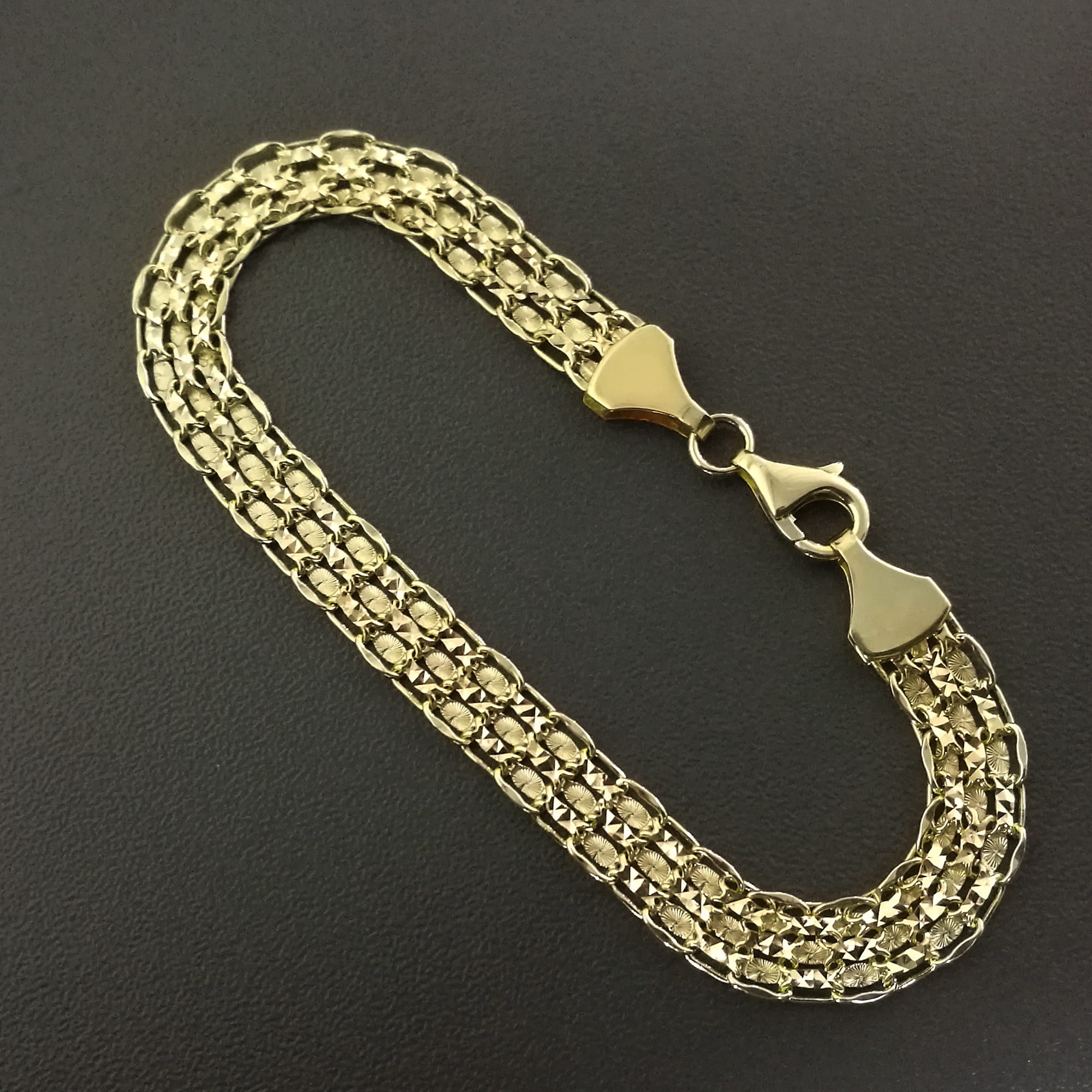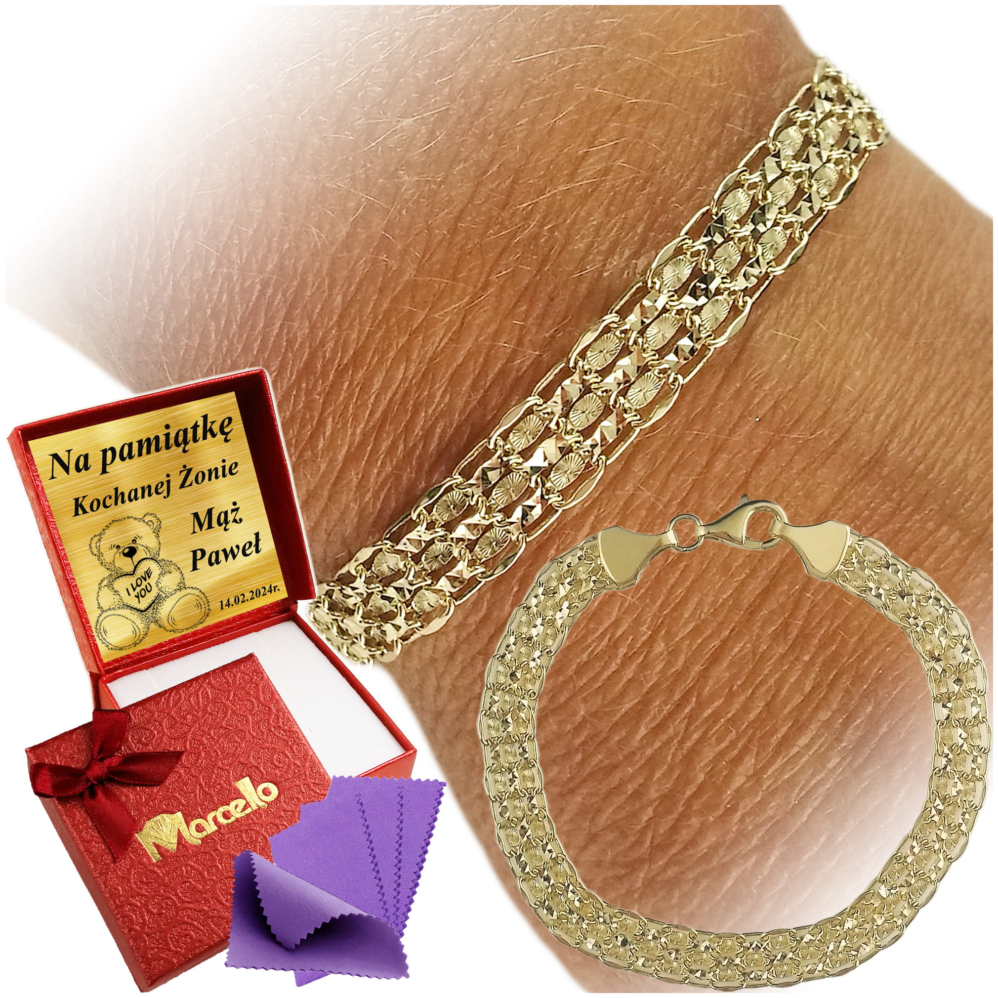 ZŁOTA BRANSOLETKA BISMARK NA RĘKĘ DAMSKA SZEROKA DIAMENTOWANA 585 GRAWER