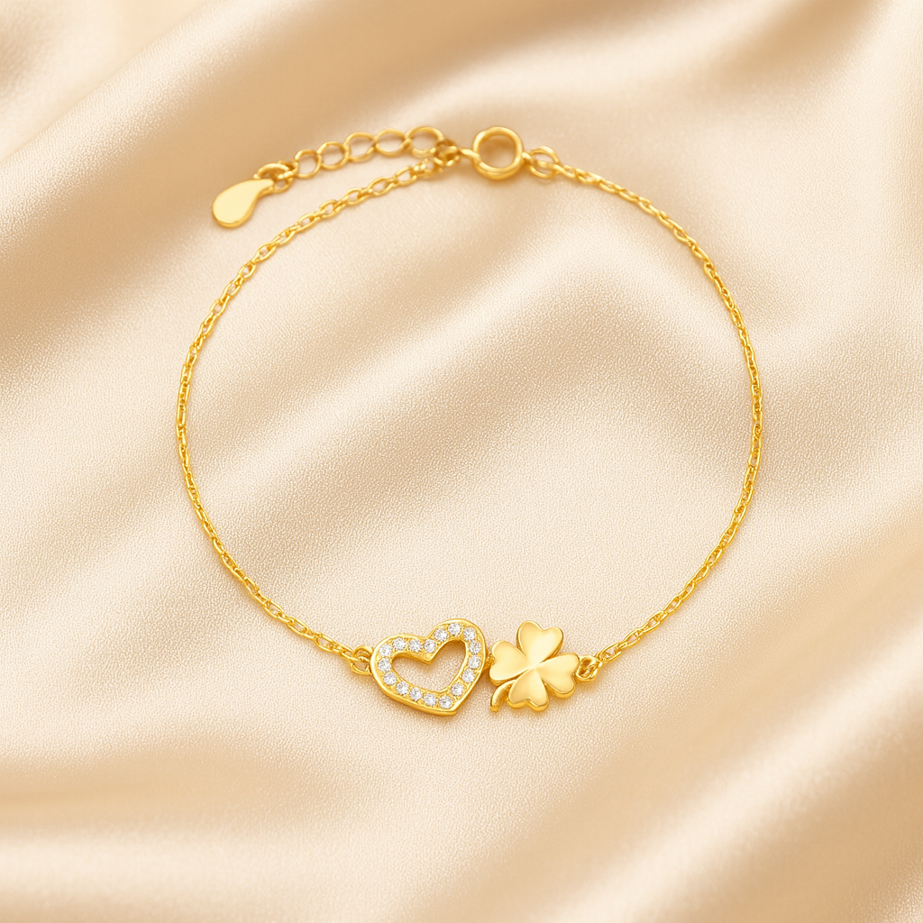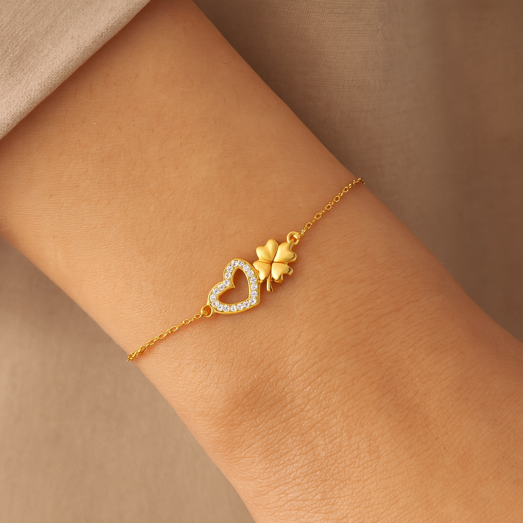 Złota Bransoletka Serce z Koniczynką z Cyrkoniami Srebro 925