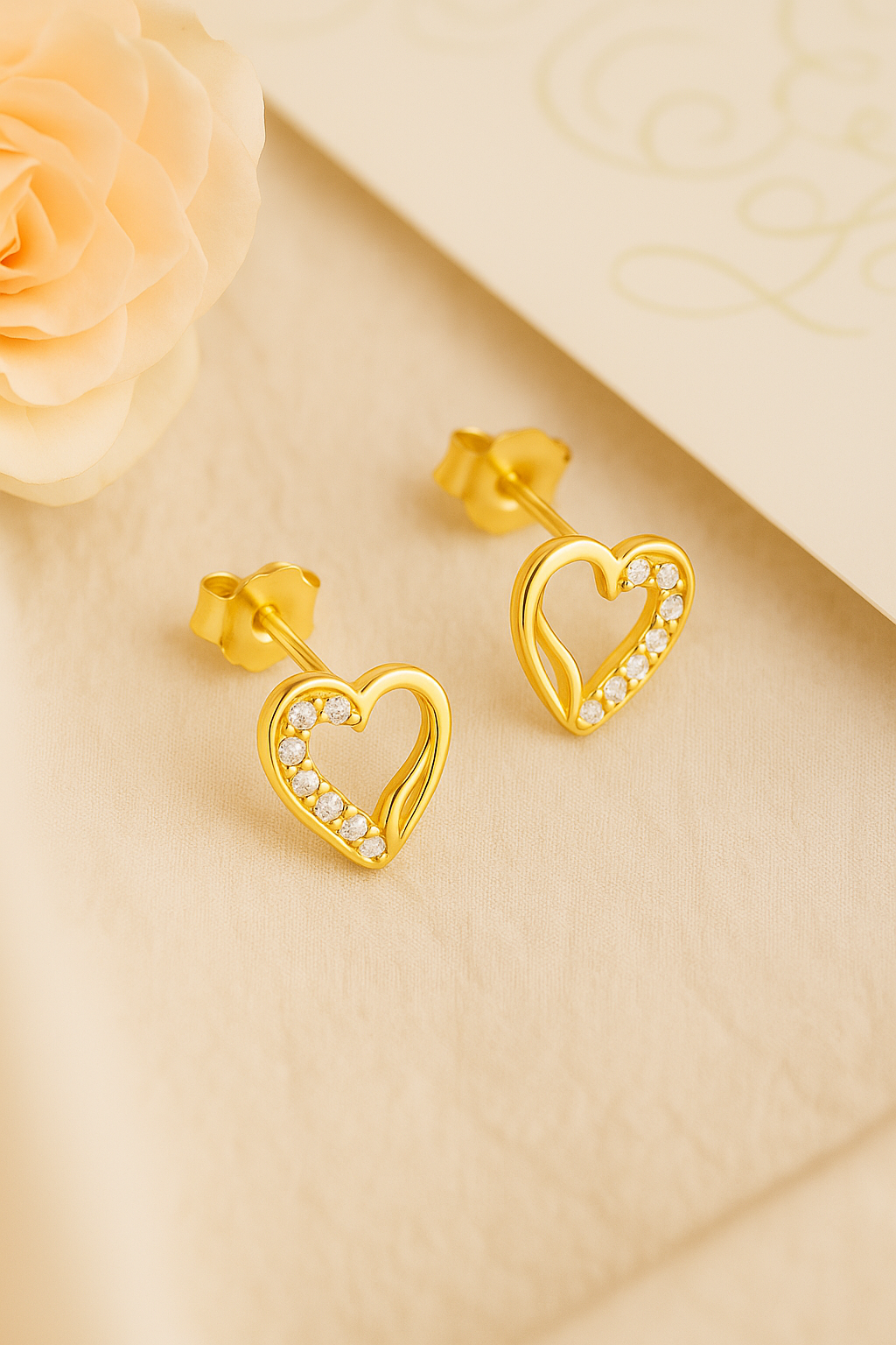 Złote Kolczyki Damskie Serduszka Srebro 925