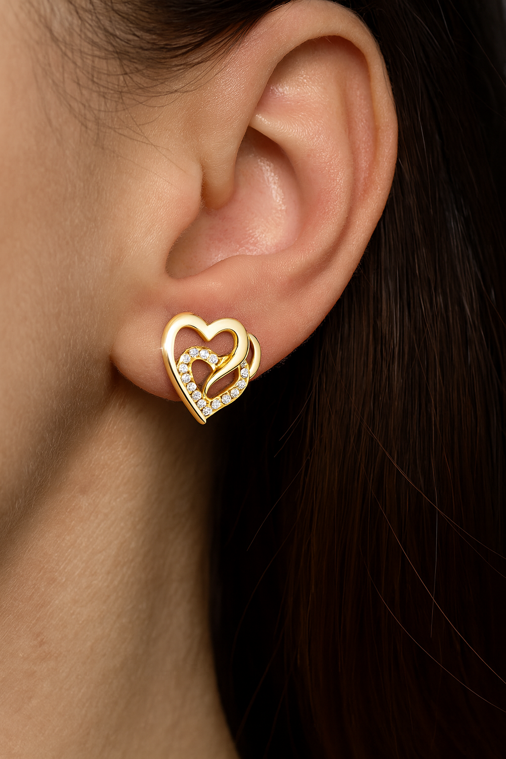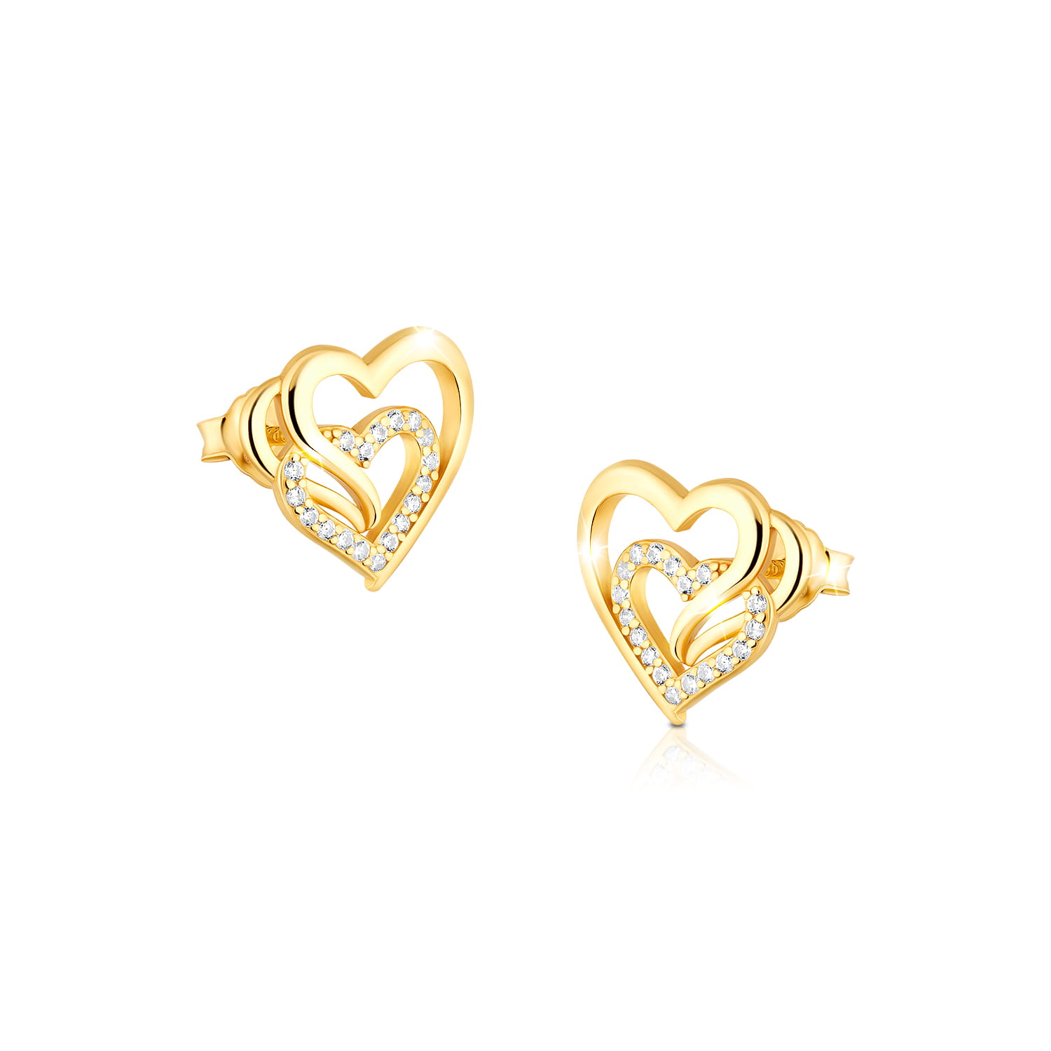 Złote Kolczyki Damskie Serduszka Srebro 925