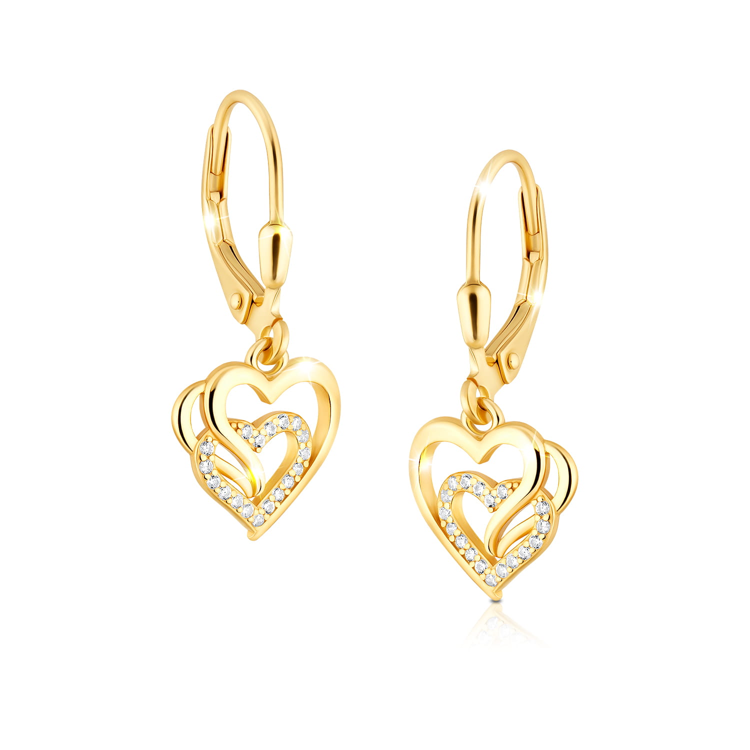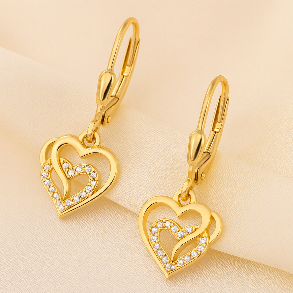 Złote Kolczyki Damskie Serduszka Srebro 925