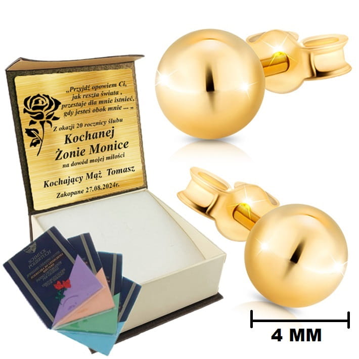 Złote Kolczyki Kuleczki 4mm pr.333 Grawer