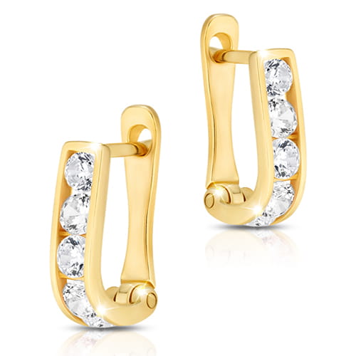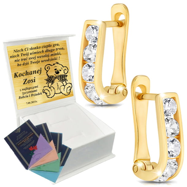 Złote kolczyki z cyrkoniami na angielskim zapięciu-  Złoto pr.585 - 14 karat