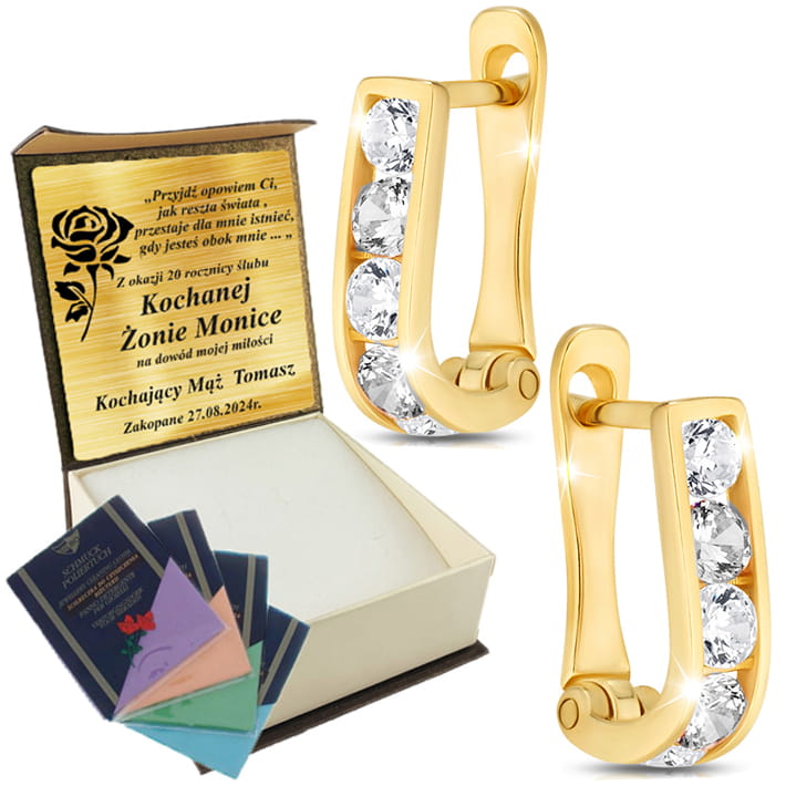 Przedmiotem sprzedaży są złote kolczyki. Produkt jest nowy, zapakowany w eleganckie pudełeczko z dedykacją na życzenie klienta. Wyrób został precyzyjnie wykonany z należytą dbałością o detale.Kolczyki posiadają bezpieczne zapięcie chroniące przed zgubieniem.Całość została wykonana ze złota próby 585 . Każdy złoty produkt o masie powyżej 1 gram jest przebadany w Państwowym Urzędzie Probierczym pod kątem jakości złota i ma wybitą próbę zgodnie z Polskim prawem probierczym więc wybierając naszą ofertę masz 100% pewności że kupujesz wyrób oryginalny i faktycznie w całości wykonany ze złota.