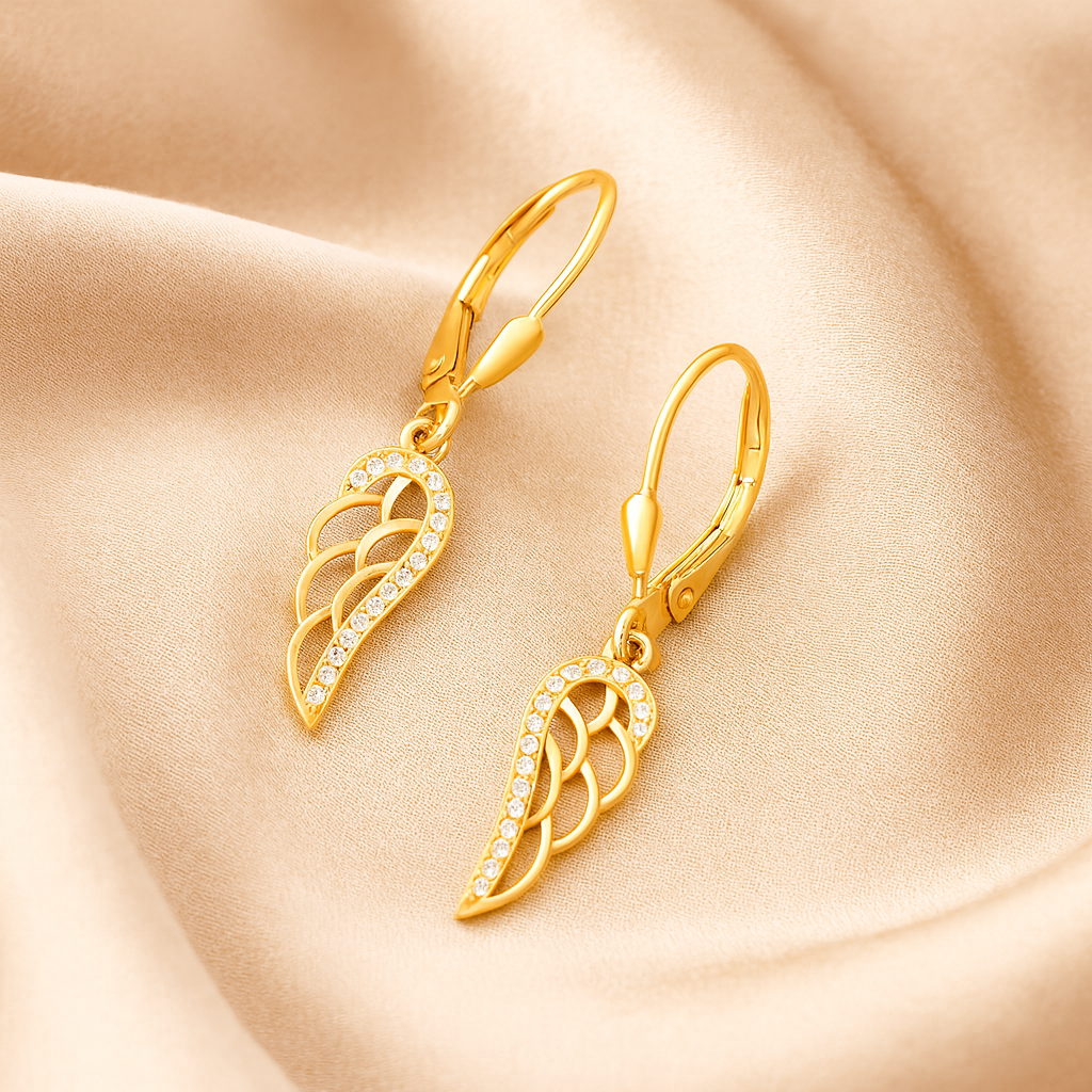 Złote Kolczyki Wiszące Skrzydła Anioła Srebro 925