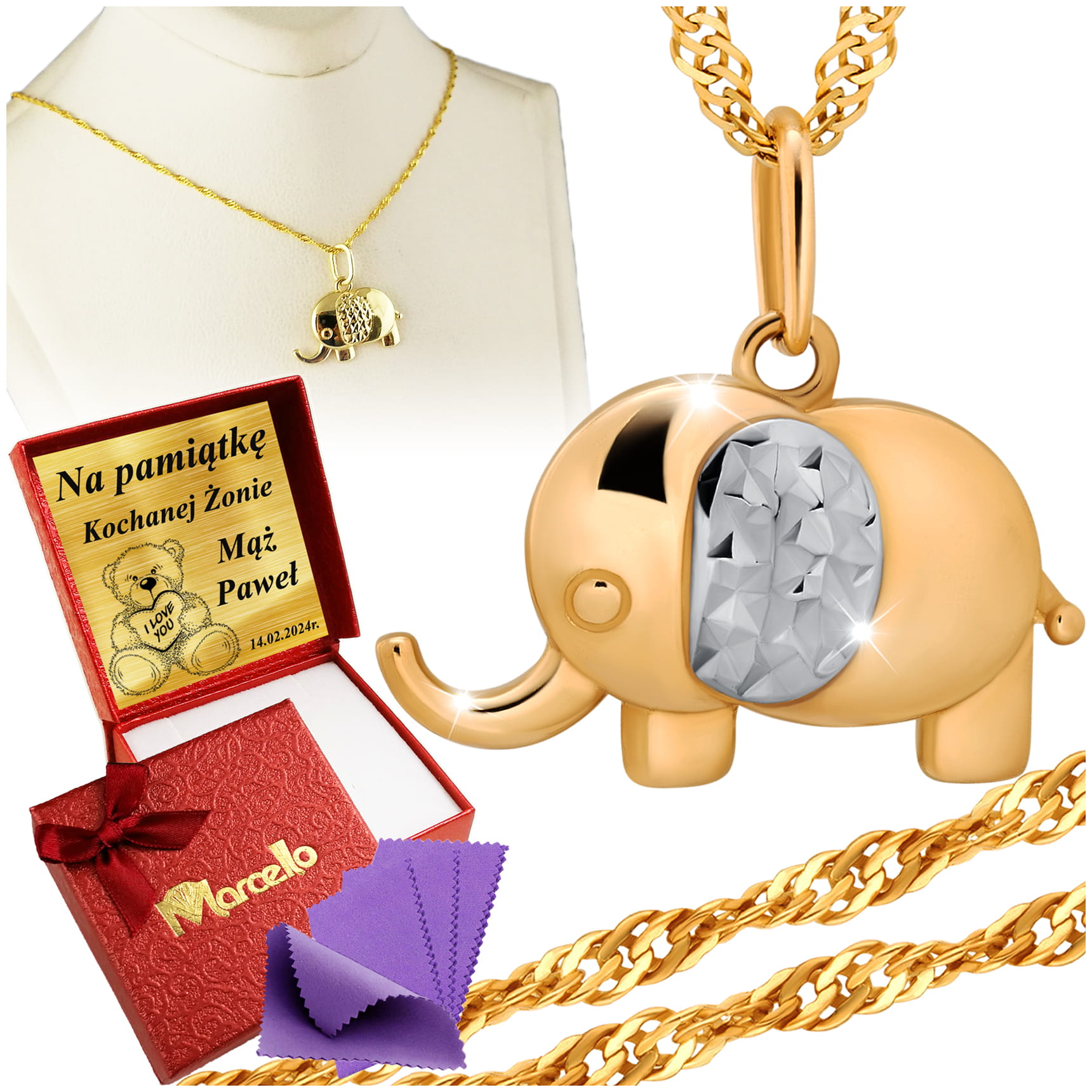Złoty Łańcuszek 333 Naszyjnik Wisiorek SŁONIK Grawer UPOMINEK GRATIS