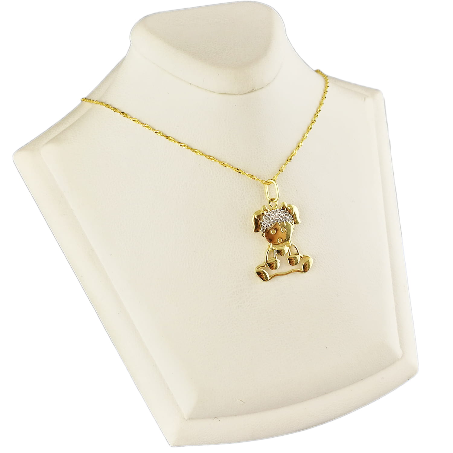 Przedmiotem sprzedaży jest złoty komplet ,łańcuszek wraz z wisiorkiem. Produkt jest nowy, zapakowany w eleganckie pudełeczko z dedykacją na życzenie klienta. Wyrób został precyzyjnie wykonany z należytą dbałością o detale.Całość została wykonana ze złota  próby 333 . Każdy złoty produkt o masie powyżej 1 gram jest przebadany w Państwowym Urzędzie Probierczym pod kątem jakości złota i ma wybitą próbę zgodnie z Polskim prawem probierczym więc wybierając naszą ofertę masz 100% pewności że kupujesz wyrób oryginalny i faktycznie w całości wykonany ze złota.