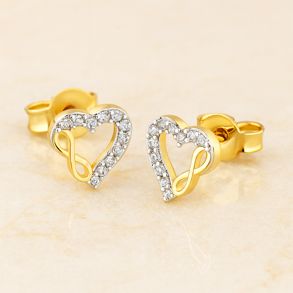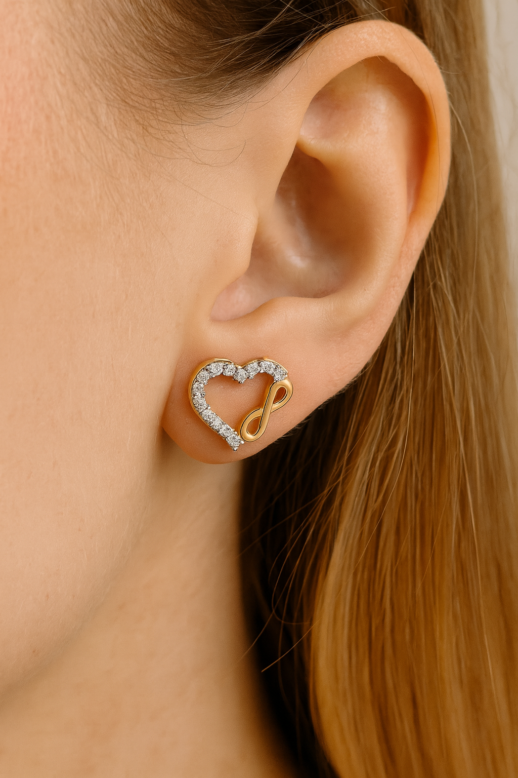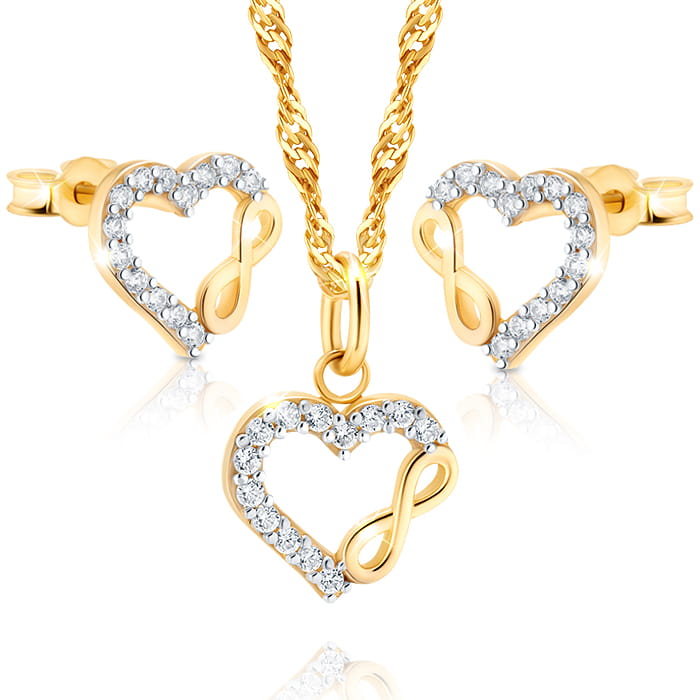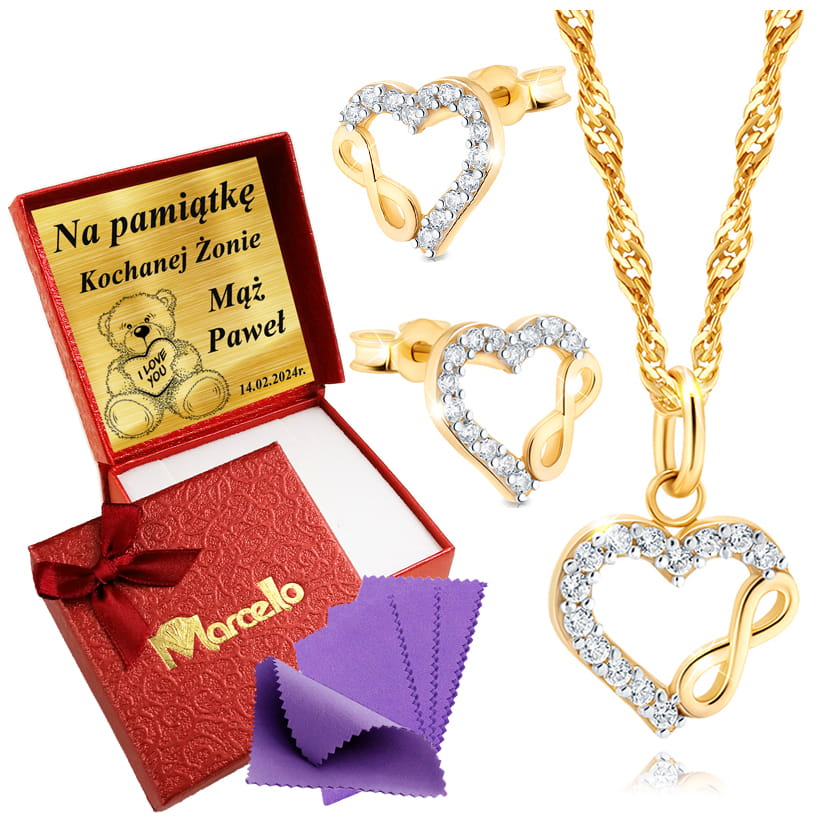 Złote kolczyki SERCA NIESKOŃCZONOŚĆ z wisiorkiem i łańcuszkiem