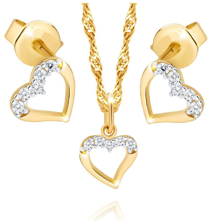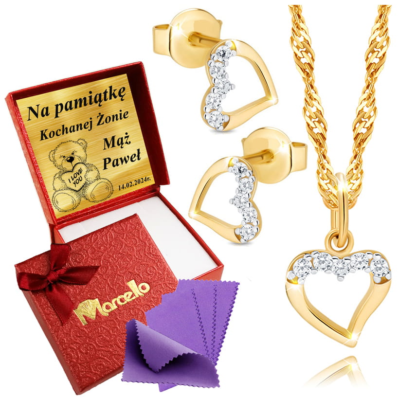 Złoty Komplet Naszyjnik Kolczyki Serca Złoto 333