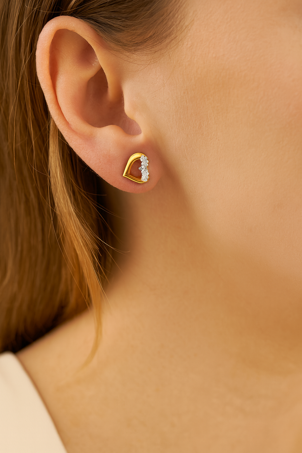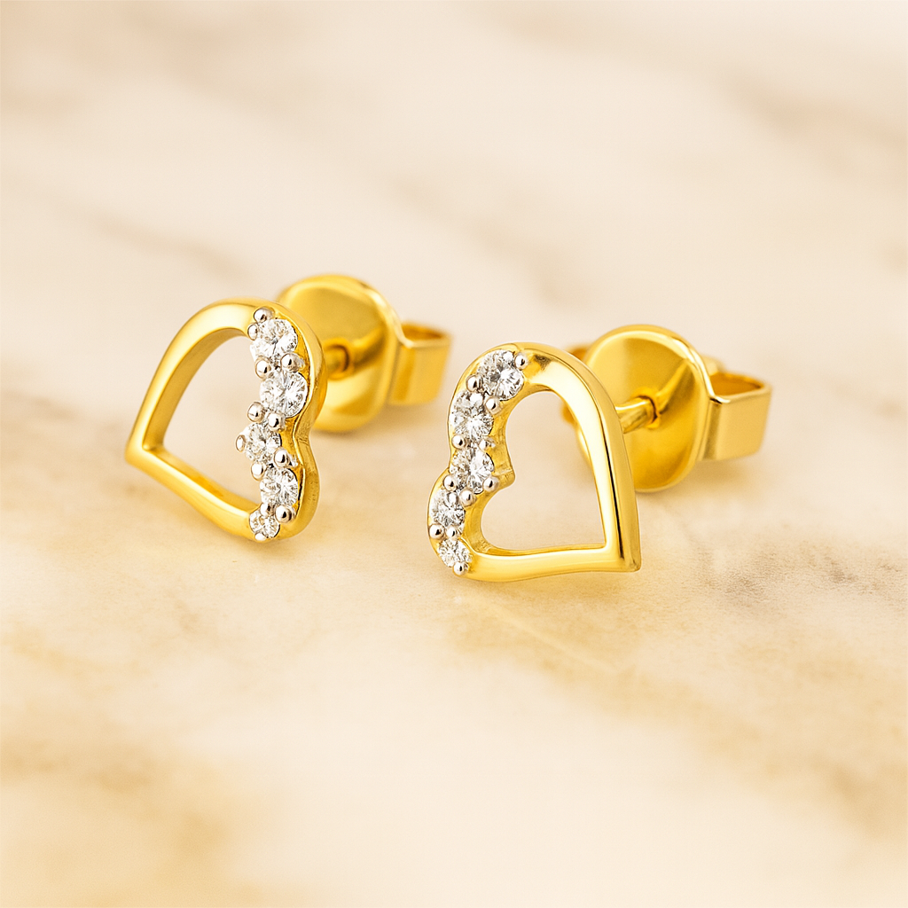 Złote kolczyki SERCA z wisiorkiem i łańcuszkiem