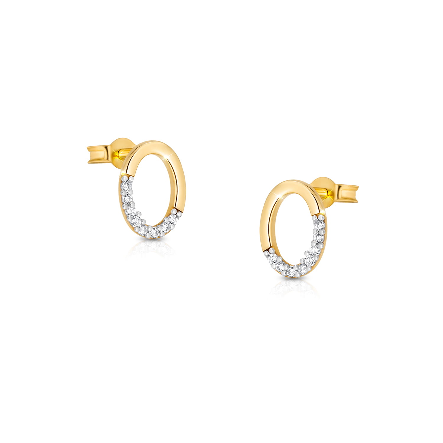 Złote kolczyki OWALE z wisiorkiem i łańcuszkiem