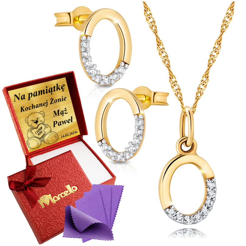 Złoty Komplet Naszyjnik Kolczyki Owale Złoto 333