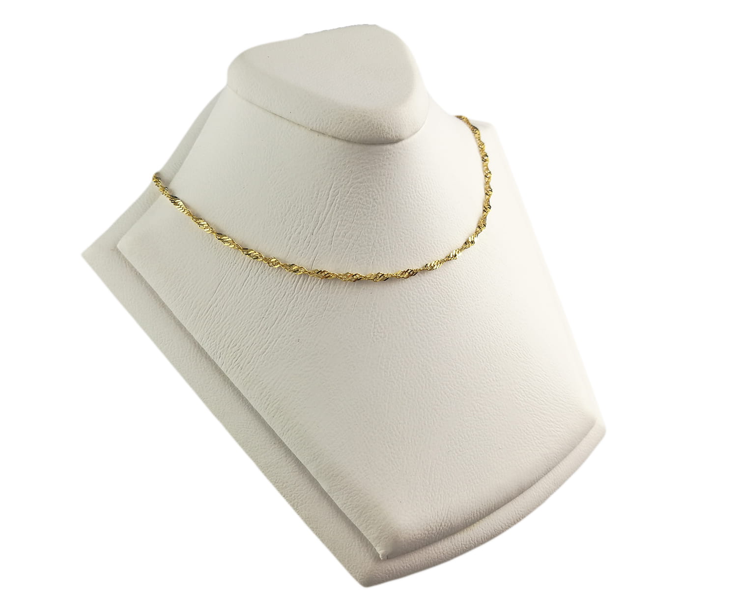 Przedmiotem sprzedaży jest złoty łańcuszek damski singapur. Produkt jest nowy, zapakowany w eleganckie pudełeczko z dedykacją na życzenie klienta. Wyrób został precyzyjnie wykonany z należytą dbałością o detale. Łańcuszek posiadają bezpieczne zapięcie chroniące przed zgubieniem.Całość została wykonana ze złota próby 585 . Każdy złoty produkt o masie powyżej 1 gram jest przebadany w Państwowym Urzędzie Probierczym pod kątem jakości złota i ma wybitą próbę zgodnie z Polskim prawem probierczym więc wybierając naszą ofertę masz 100% pewności że kupujesz wyrób oryginalny i faktycznie w całości wykonany ze złota.