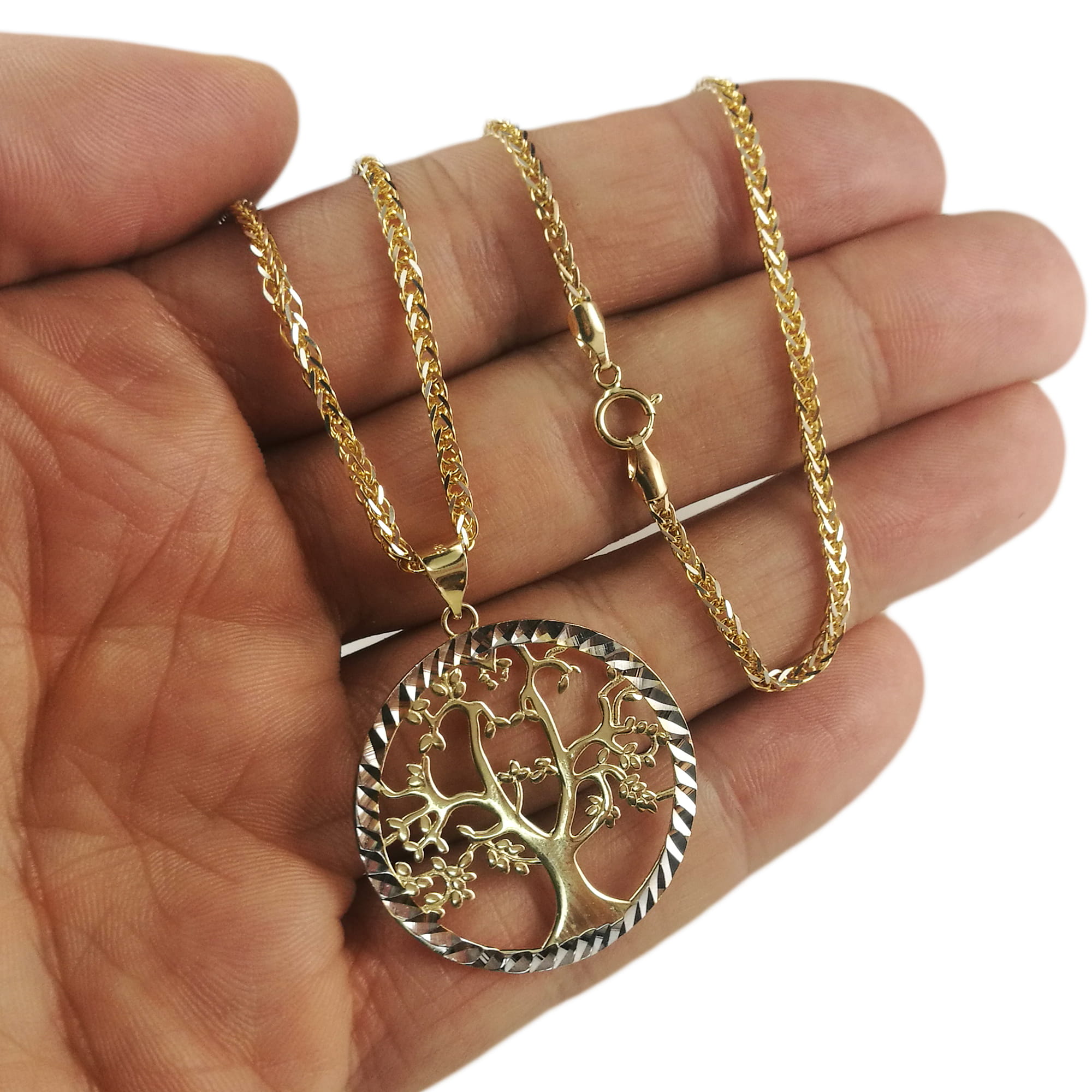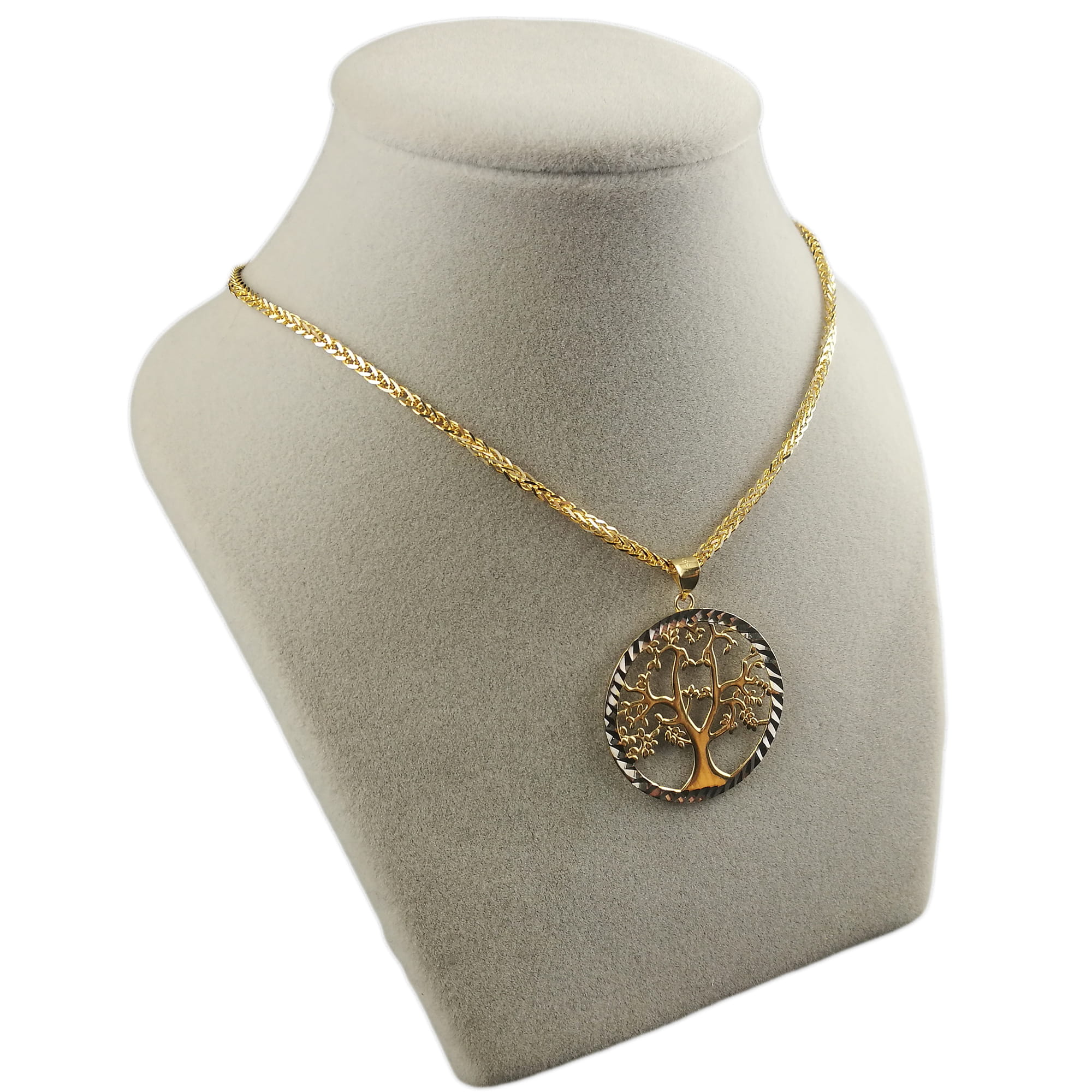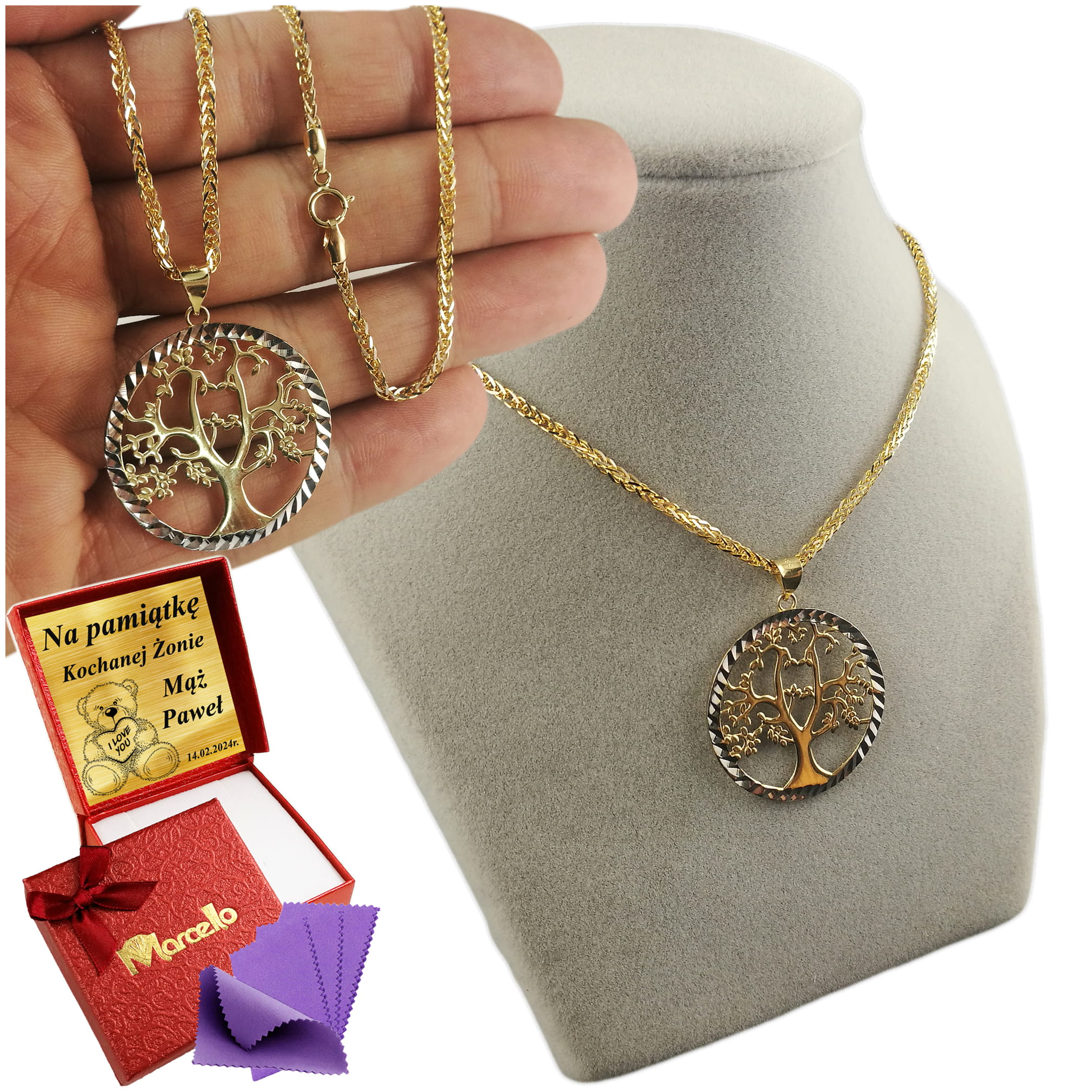 Złoty Piękny Łańcuszek 585 LISI OGON Z WISIORKIEM DRZEWKO SZCZĘŚCIA GRAWER