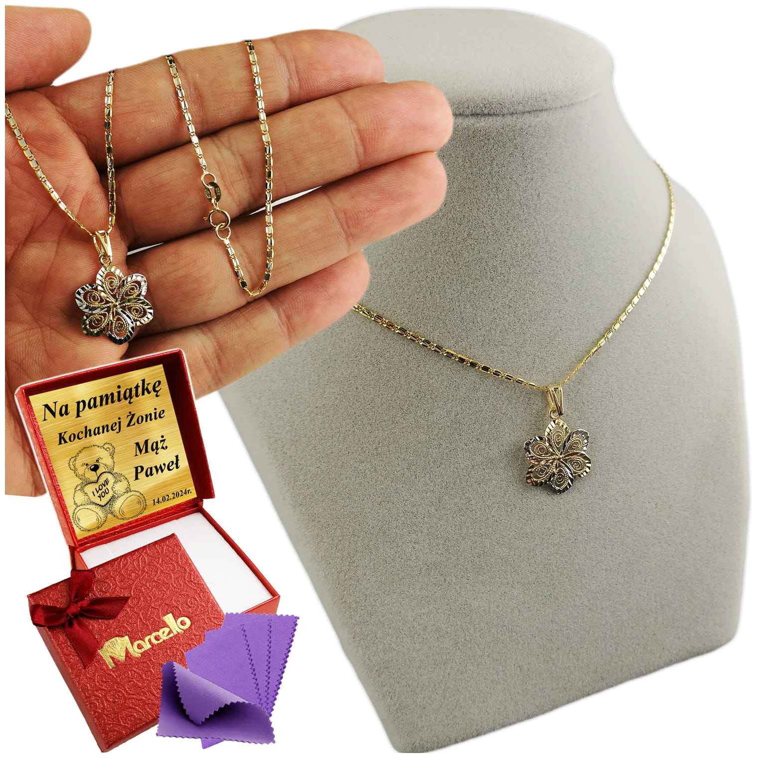 Złoty Piękny Łańcuszek Naszyjnik KWIAT BŁYSZCZĄCY Złoto 585 GRAWER GRATIS