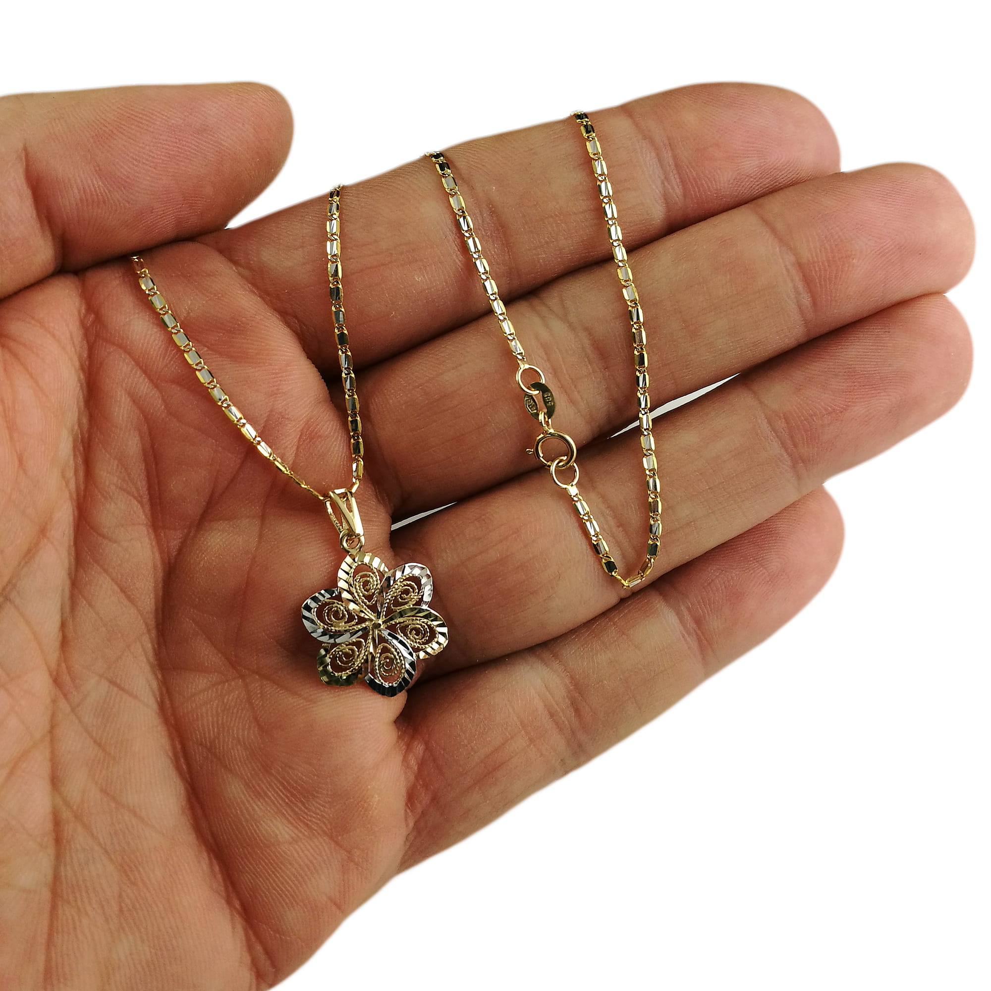 Złoty Piękny Łańcuszek Naszyjnik KWIAT BŁYSZCZĄCY Złoto 585