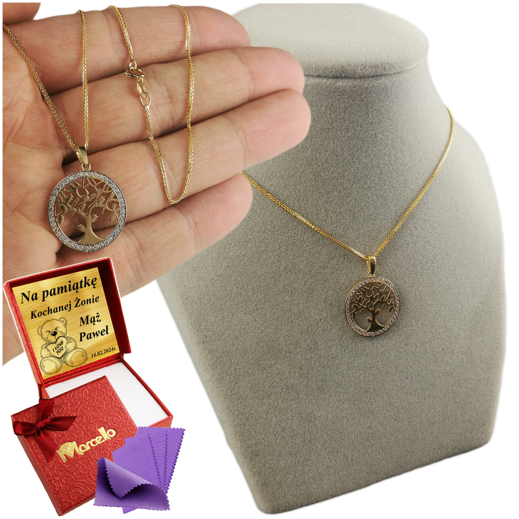 Złoty Piękny Łańcuszek Naszyjnik LISI OGON DRZEWKO SZCZĘŚCIA Złoto 585