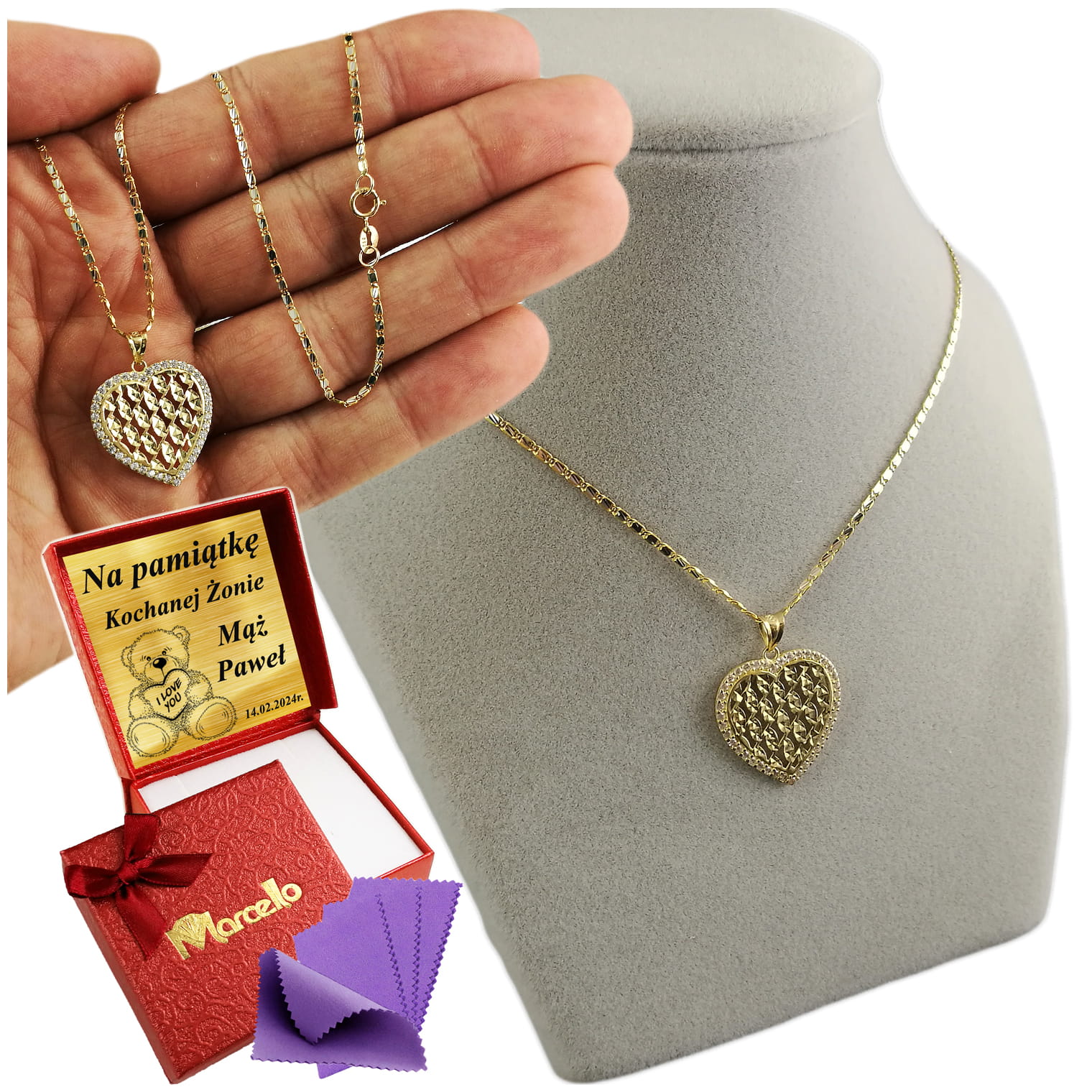 Złoty Piękny Łańcuszek Naszyjnik SERCE BŁYSZCZĄCY Złoto 585 GRAWER GRATIS