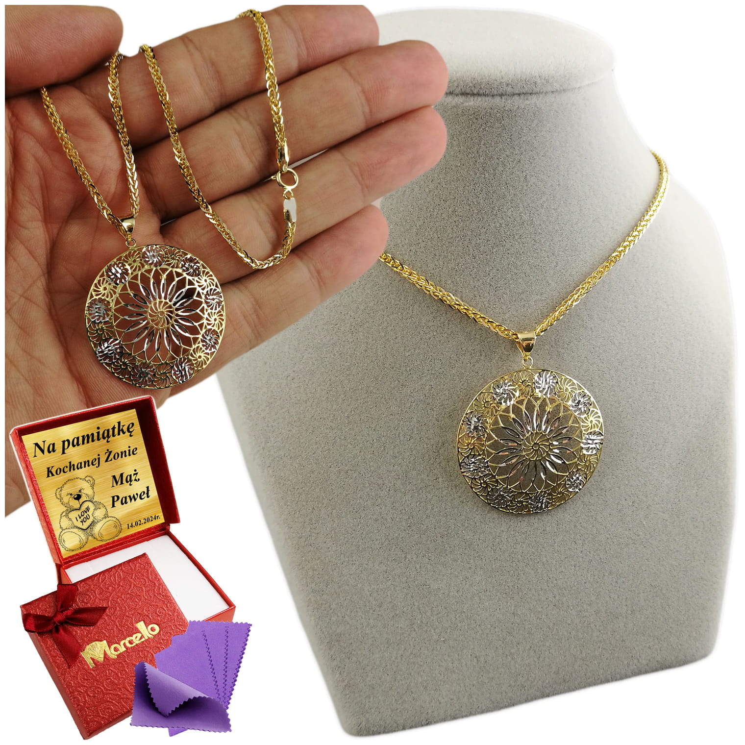 ➡️ Możesz wybrać w jakie pudełko zapakować produkt. Dostępne jest : standardowe z logiem firmy oraz okazjonalne do Komunii Św. lub Chrztu Św. w kolorze białym.