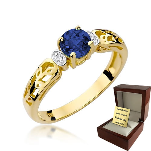 ZŁOTY PIERŚCIONEK ZARĘCZYNOWY Z BRYLANTEM + Szafir