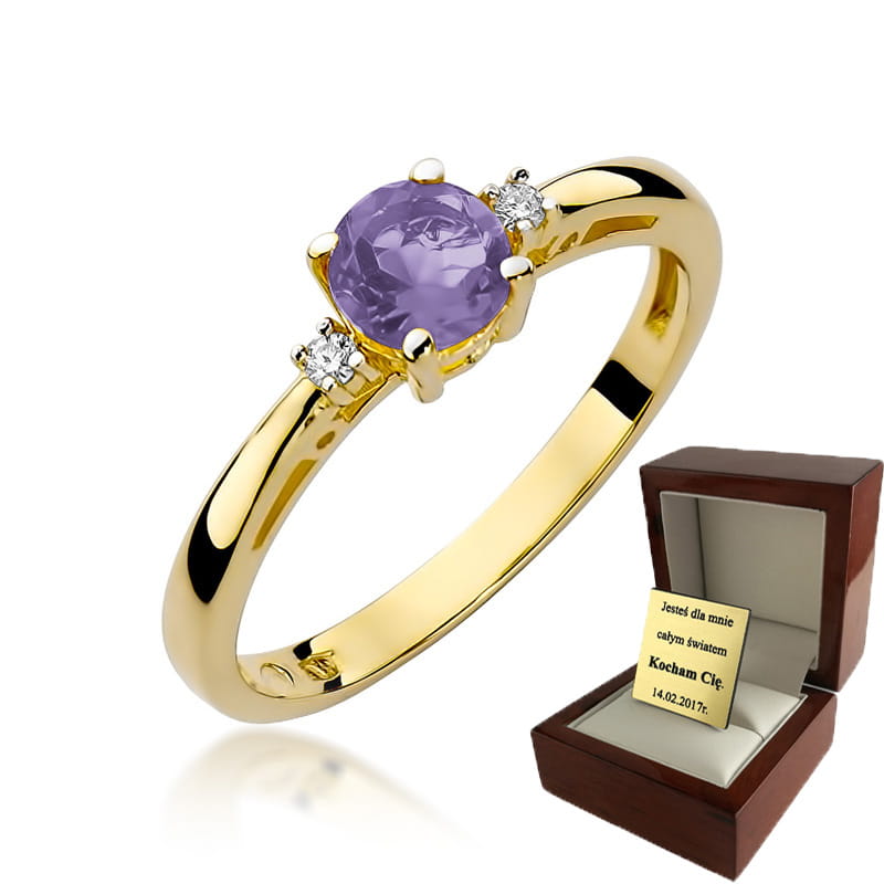 ZŁOTY PIERŚCIONEK ZARĘCZYNOWY Z BRYLANTEM + Ametyst