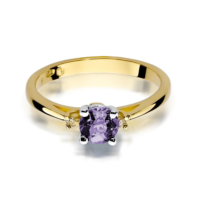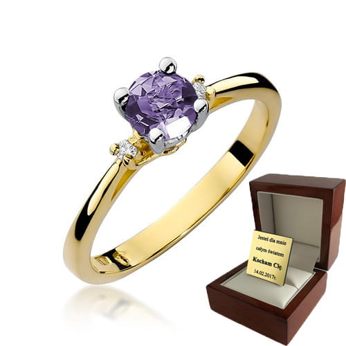 ZŁOTY PIERŚCIONEK ZARĘCZYNOWY Z BRYLANTEM + Ametyst