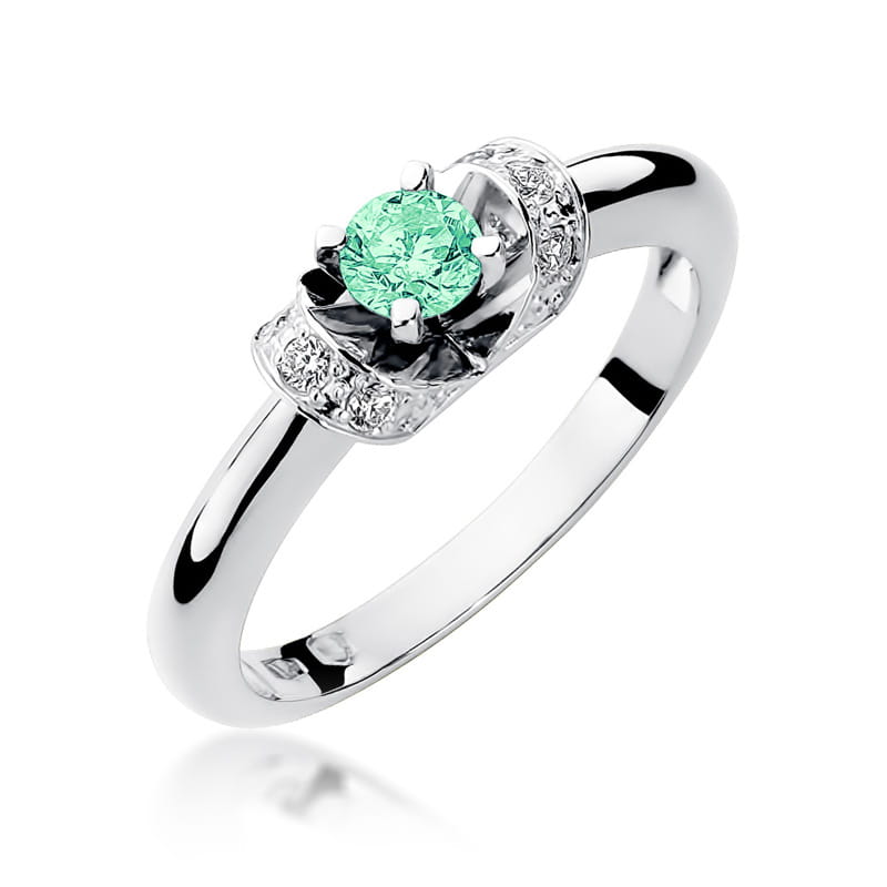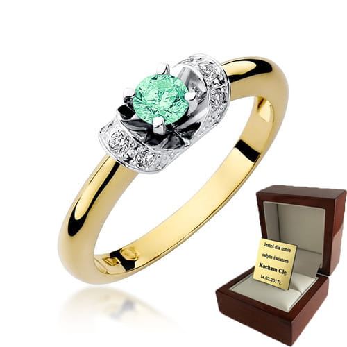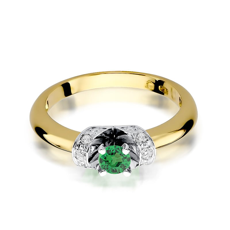 ZŁOTY PIERŚCIONEK ZARĘCZYNOWY Z BRYLANTEM i SZMARAGDEM