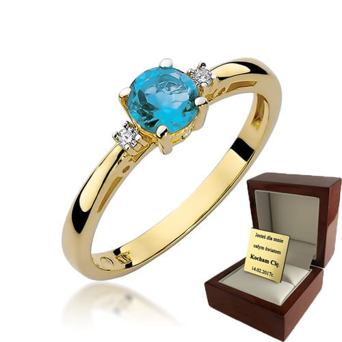 ZŁOTY PIERŚCIONEK ZARĘCZYNOWY Z BRYLANTEM + Topaz