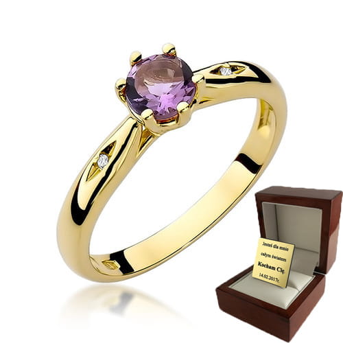 ZŁOTY PIERŚCIONEK ZARĘCZYNOWY Z AMETYSTEM i BRYLANTAMI