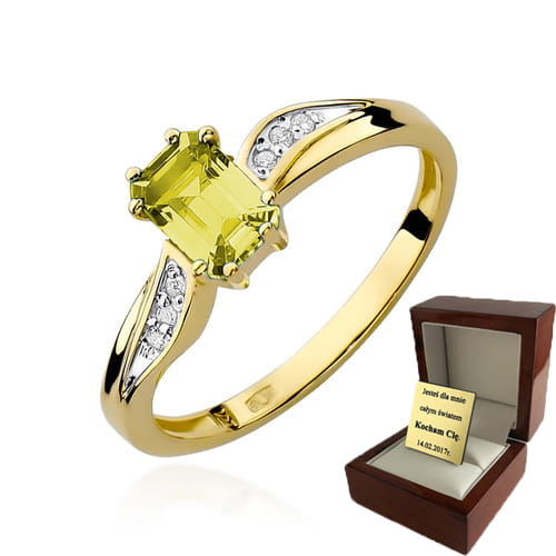 ZŁOTY PIERŚCIONEK ZARĘCZYNOWY Z CYTRYNEM i BRYLANTAMI