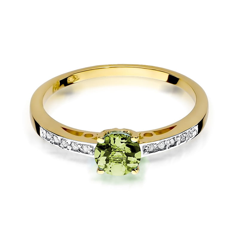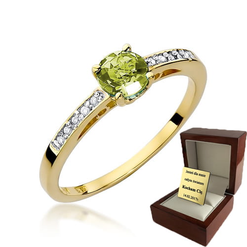 ZŁOTY PIERŚCIONEK ZARĘCZYNOWY Z OLIWINEM I BRYLANTAMI