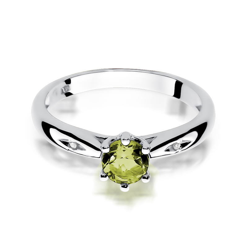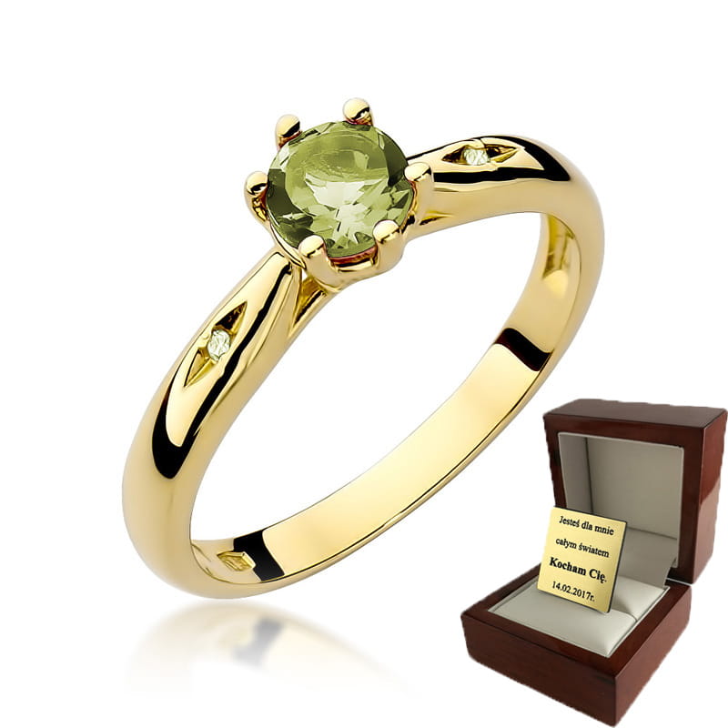 ZŁOTY PIERŚCIONEK ZARĘCZYNOWY Z OLIWINEM i BRYLANTAMI