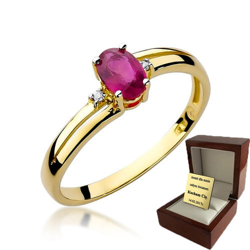 ZŁOTY PIERŚCIONEK ZARĘCZYNOWY Z RUBINEM I BRYLANTAMI