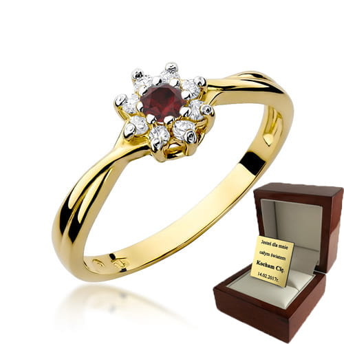 ZŁOTY PIERŚCIONEK ZARĘCZYNOWY Z RUBINEM i BRYLANTAMI