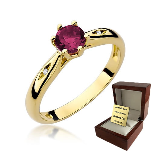 ZŁOTY PIERŚCIONEK ZARĘCZYNOWY Z RUBINEM I BRYLANTAMI