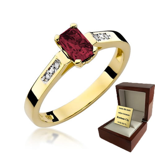 ZŁOTY PIERŚCIONEK ZARĘCZYNOWY Z RUBINEM I BRYLANTAMI